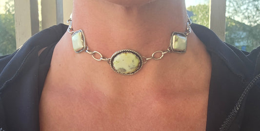 Choker Lariet Golden Hill Turquoise & Sterling Silver Navajo Style Pearl • 15 inches with 6 inch drop