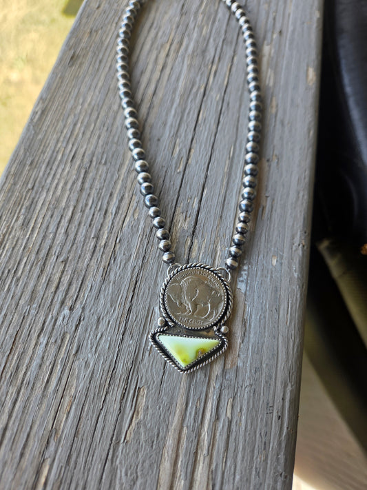 Buffalo Coin & Golden Hill Turquoise 19.5 inches