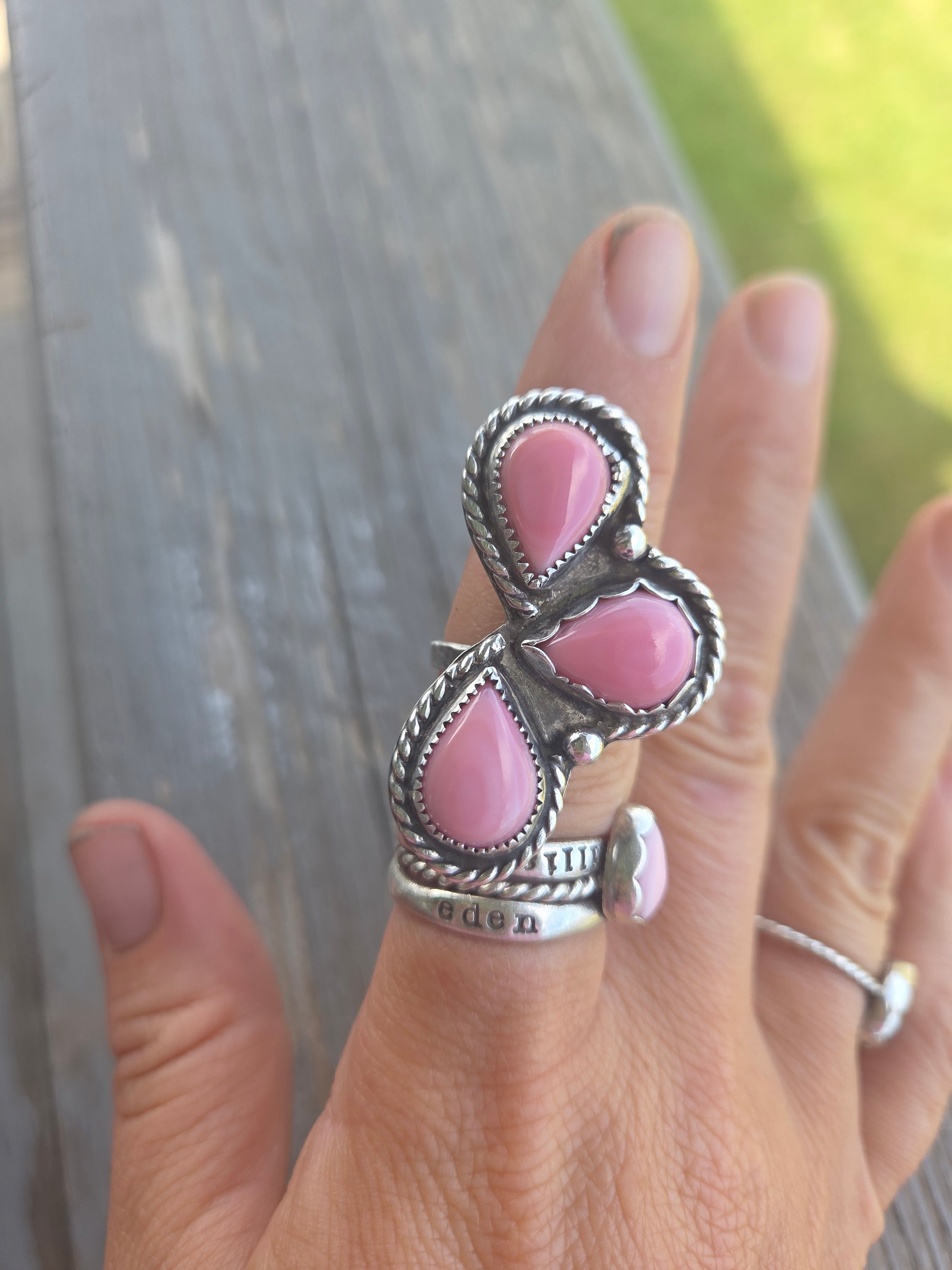 3 Stone Pink Conch Size 7.25