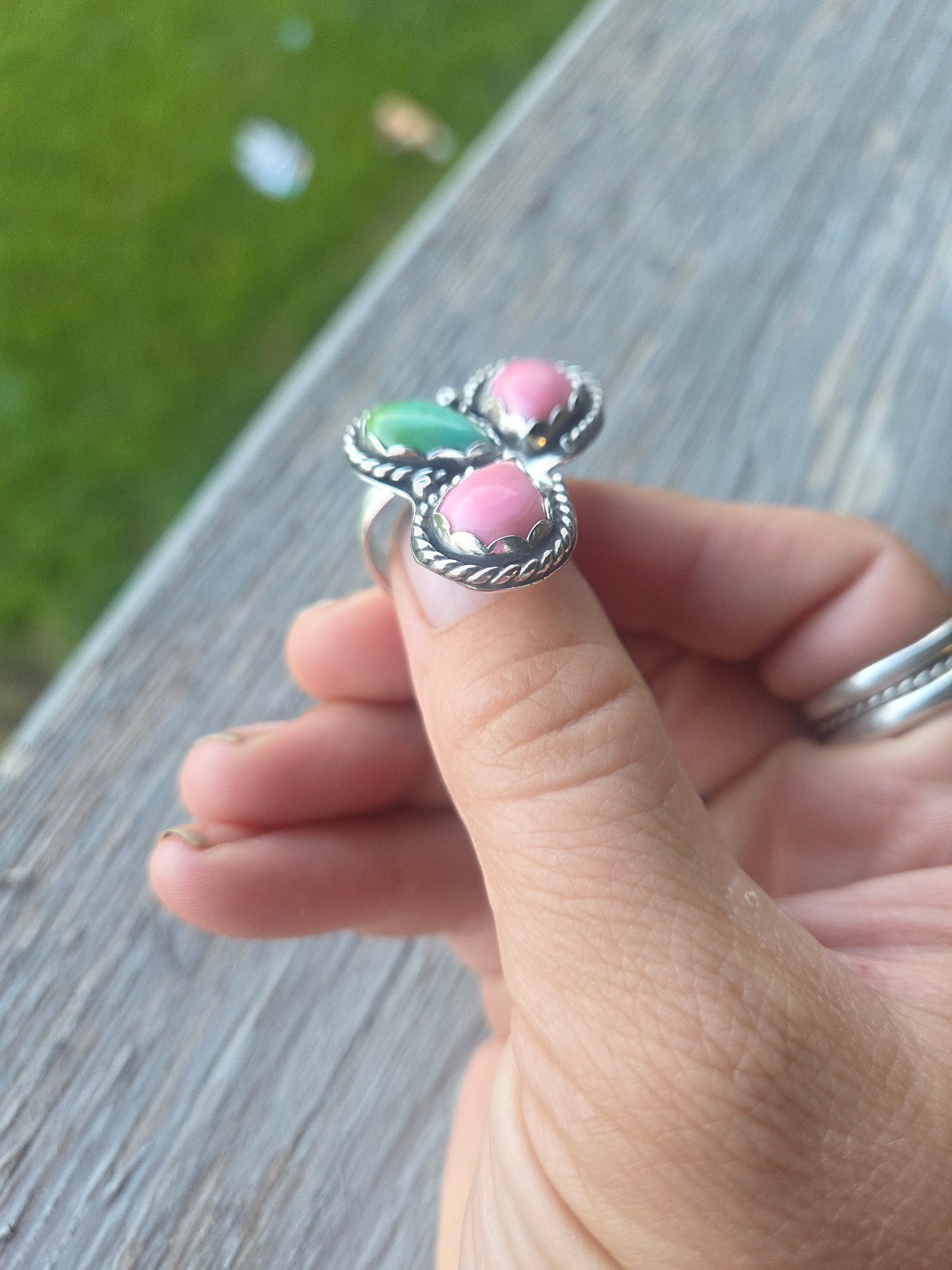 3 Stone • Pink Conch• Sonoran Turquoise Size 8
