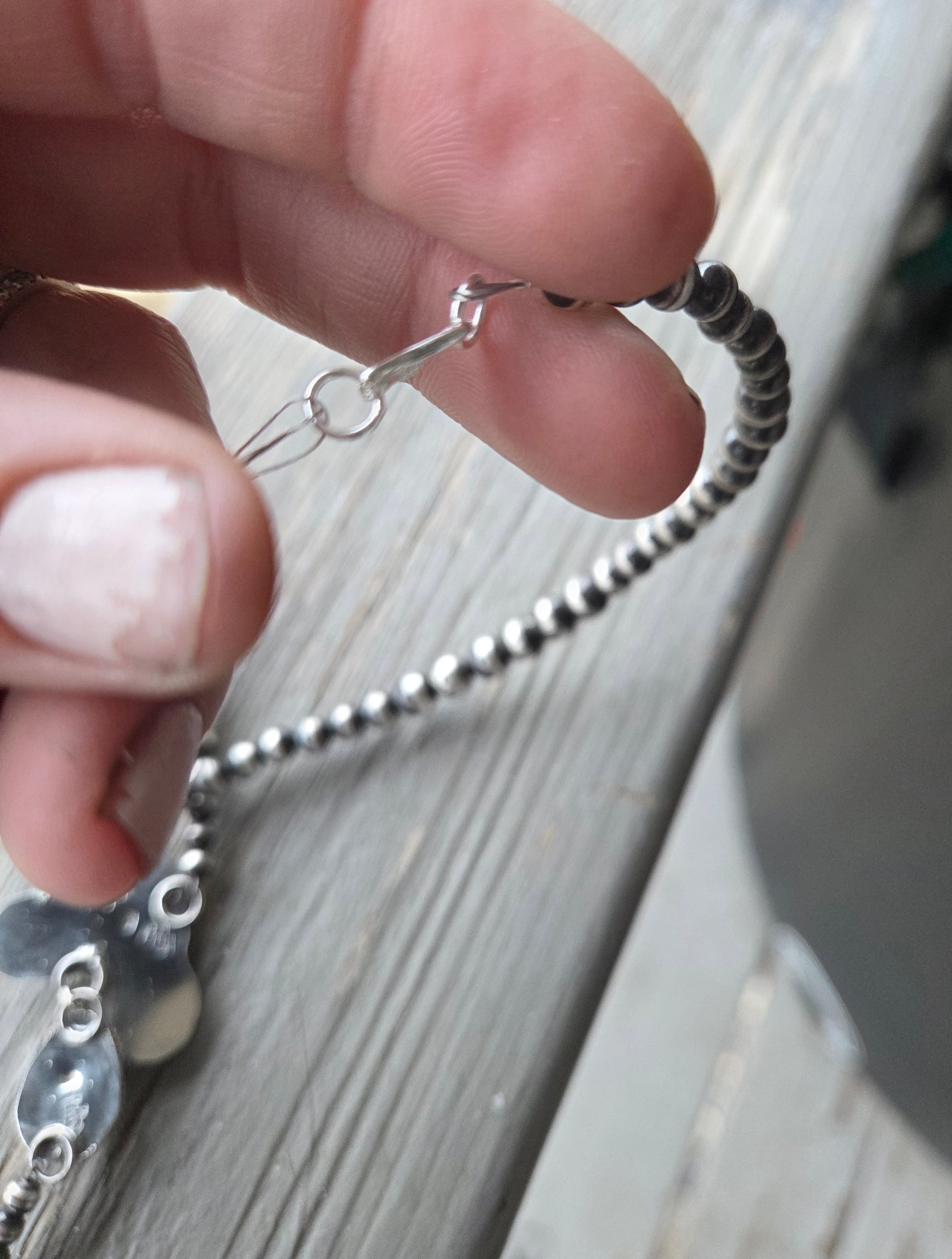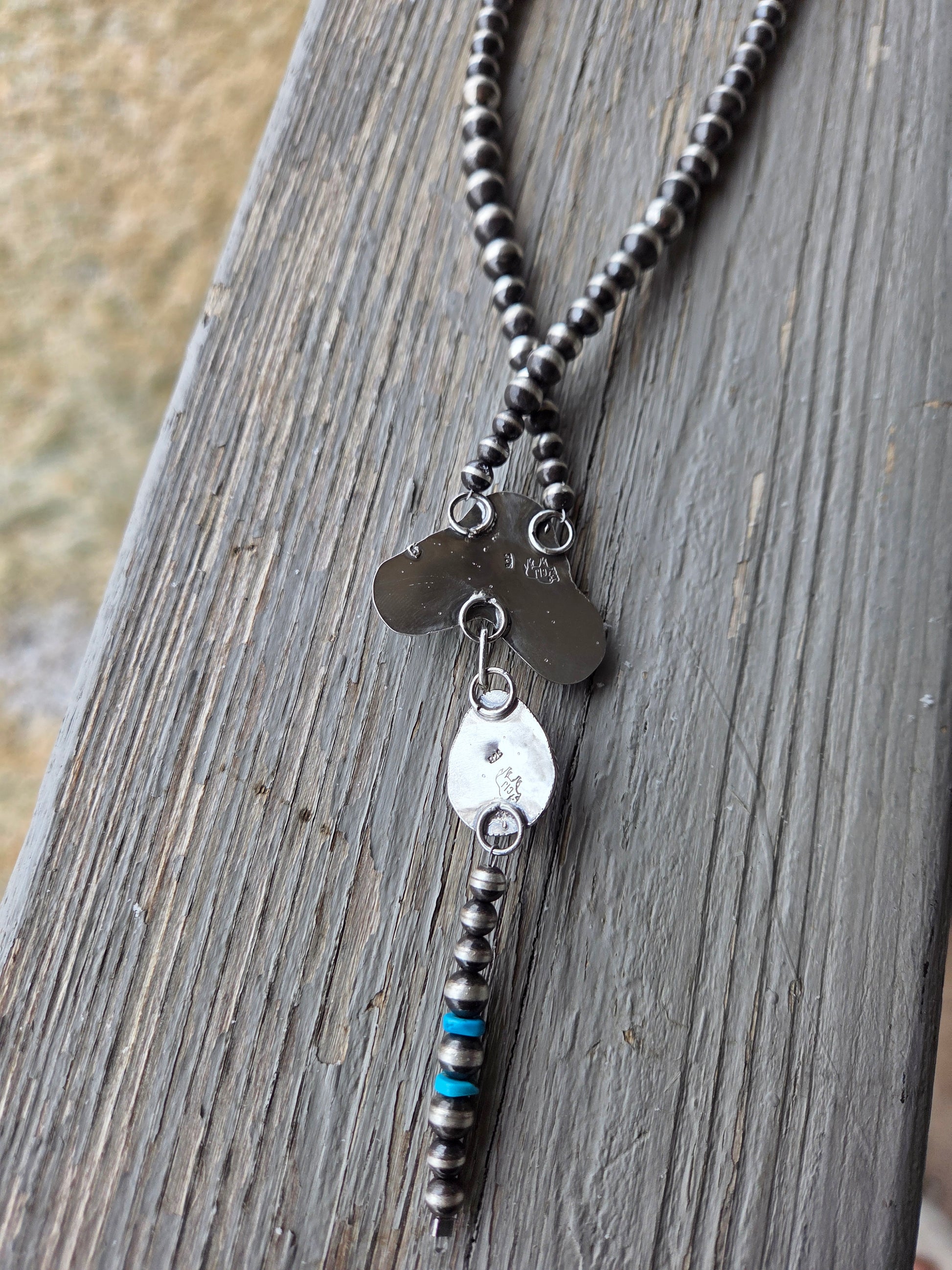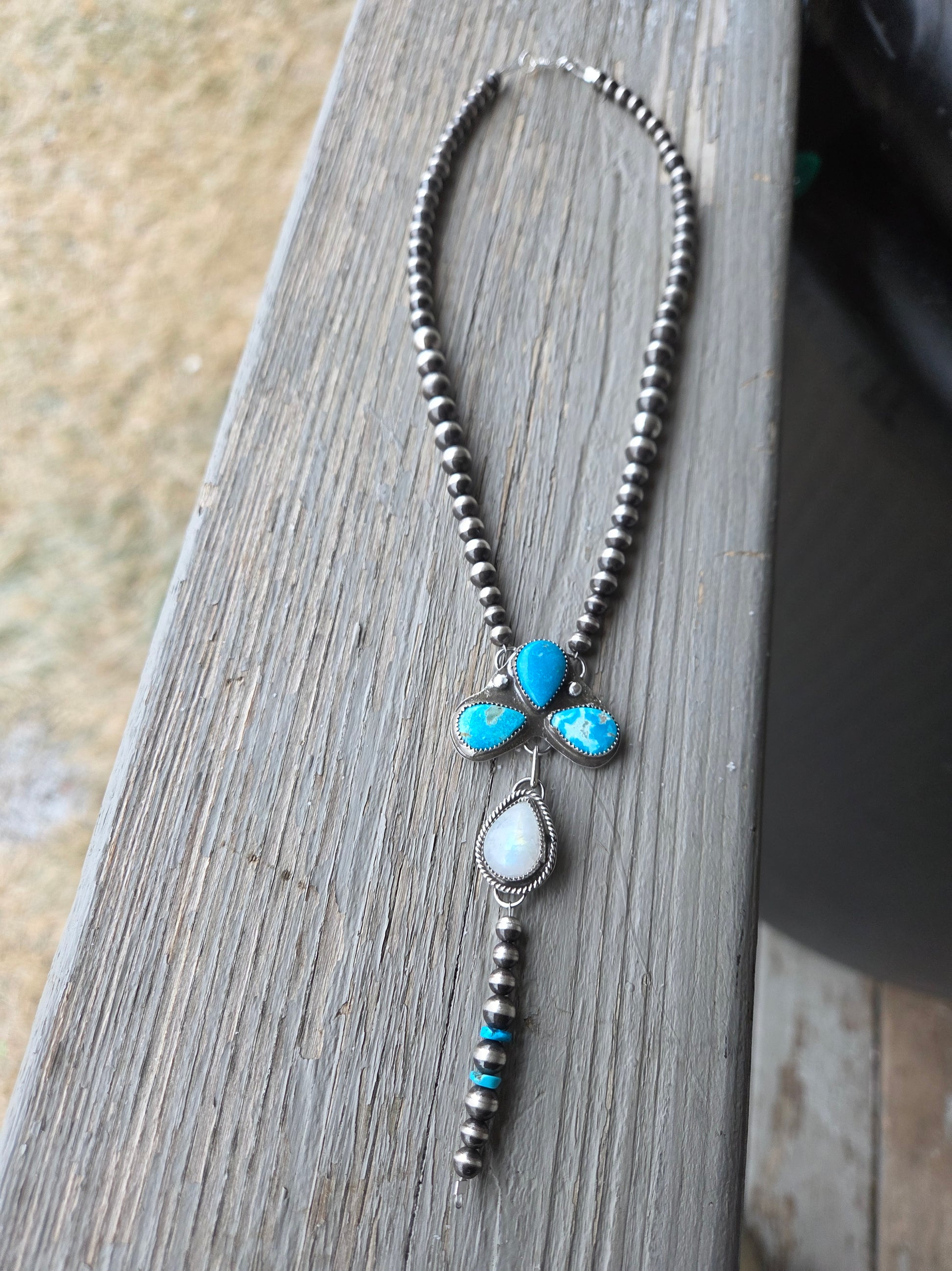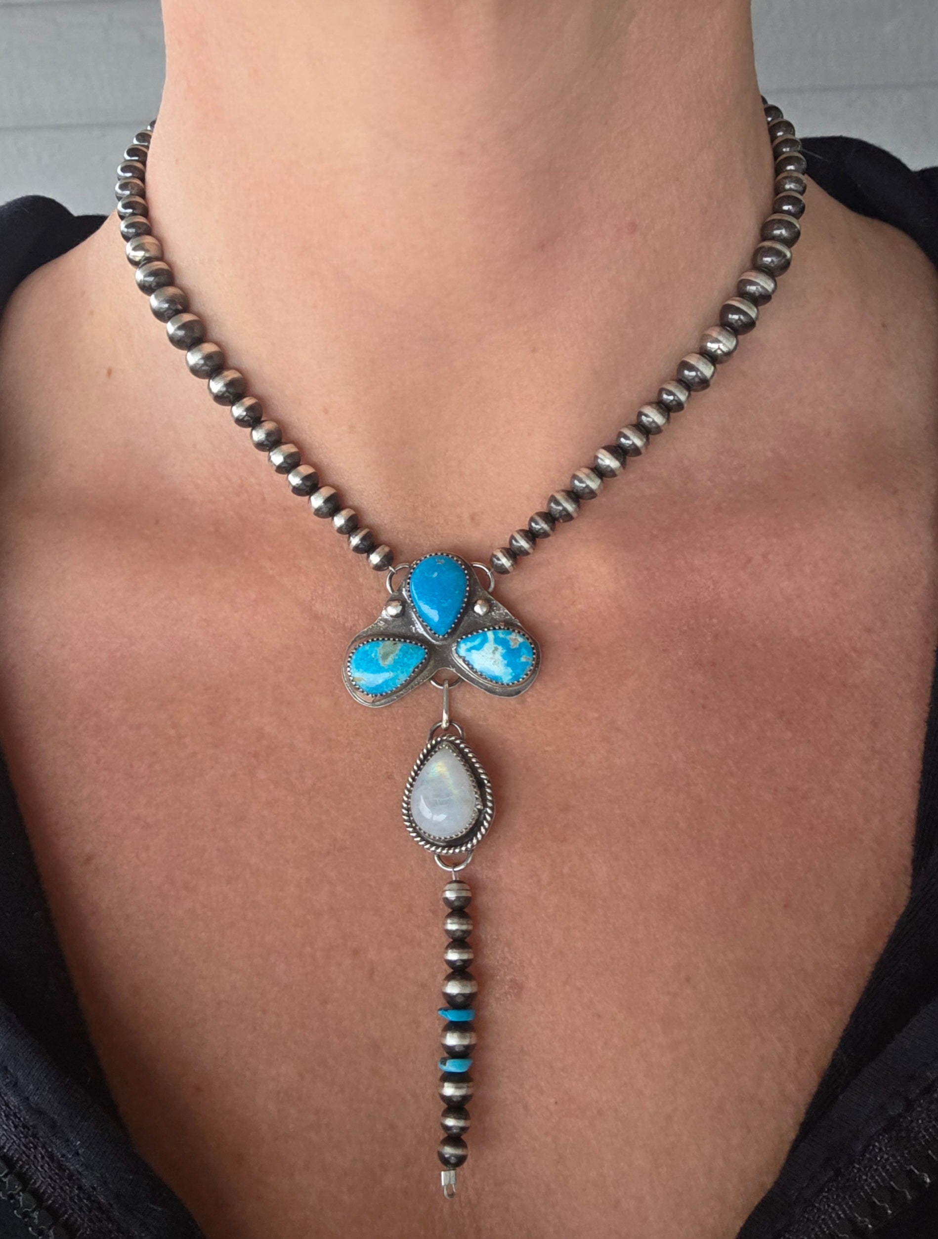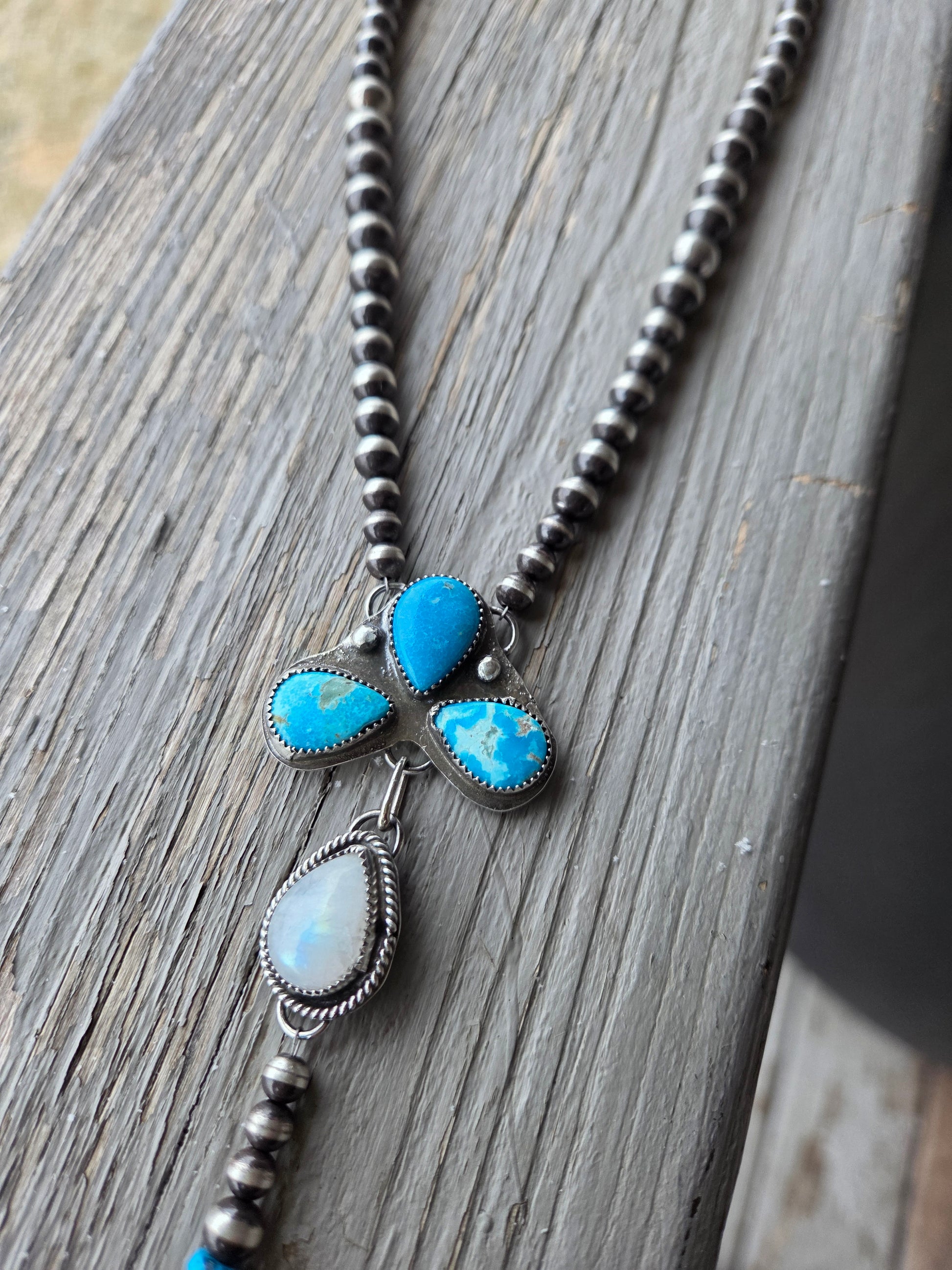 Blue Bird Turquoise & Moonstone Lariat & Sterling Silver Navajo Style Pearls 16 inches