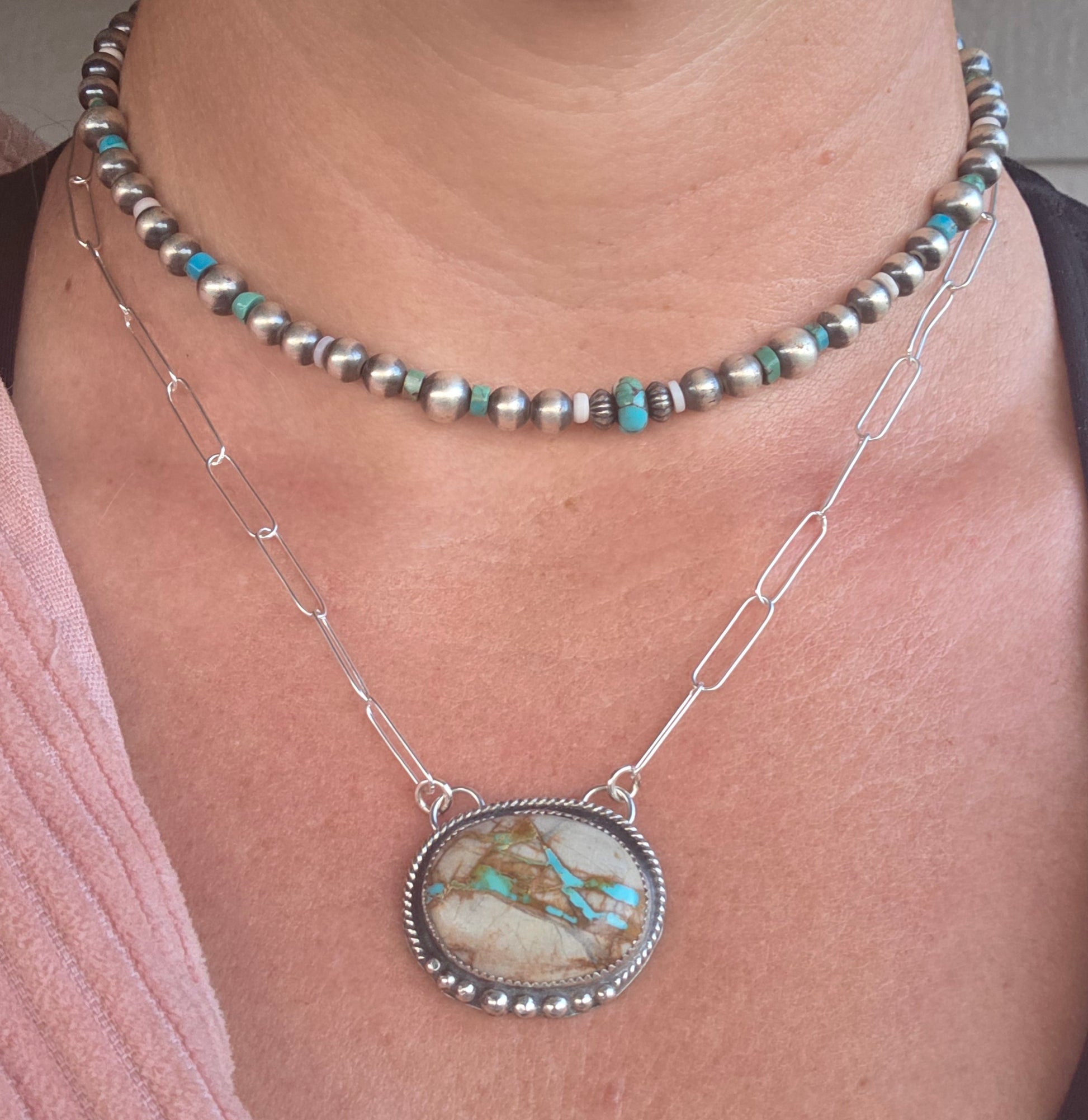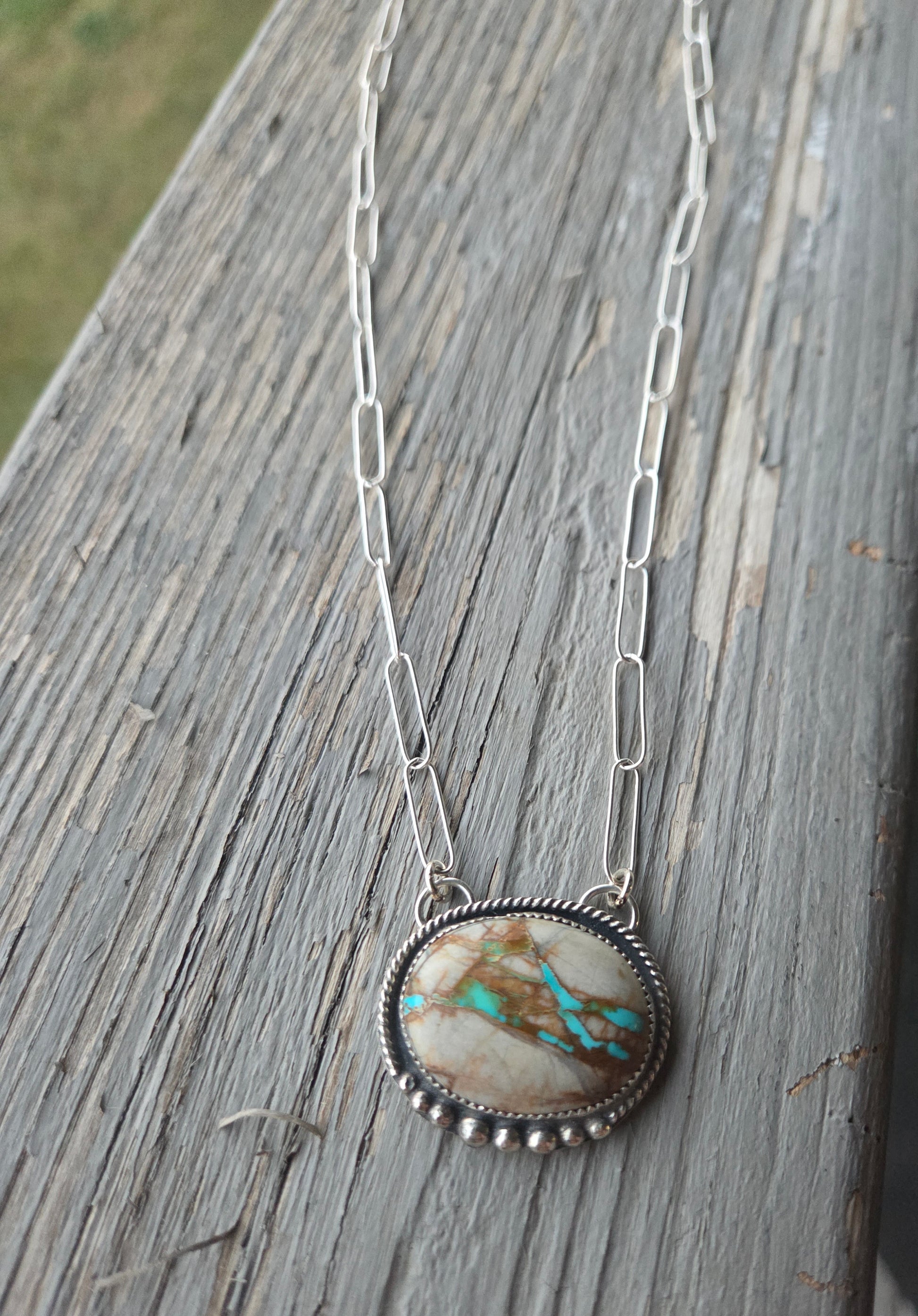 Boulder Turquoise on Paper Clip sterling Silver Chain