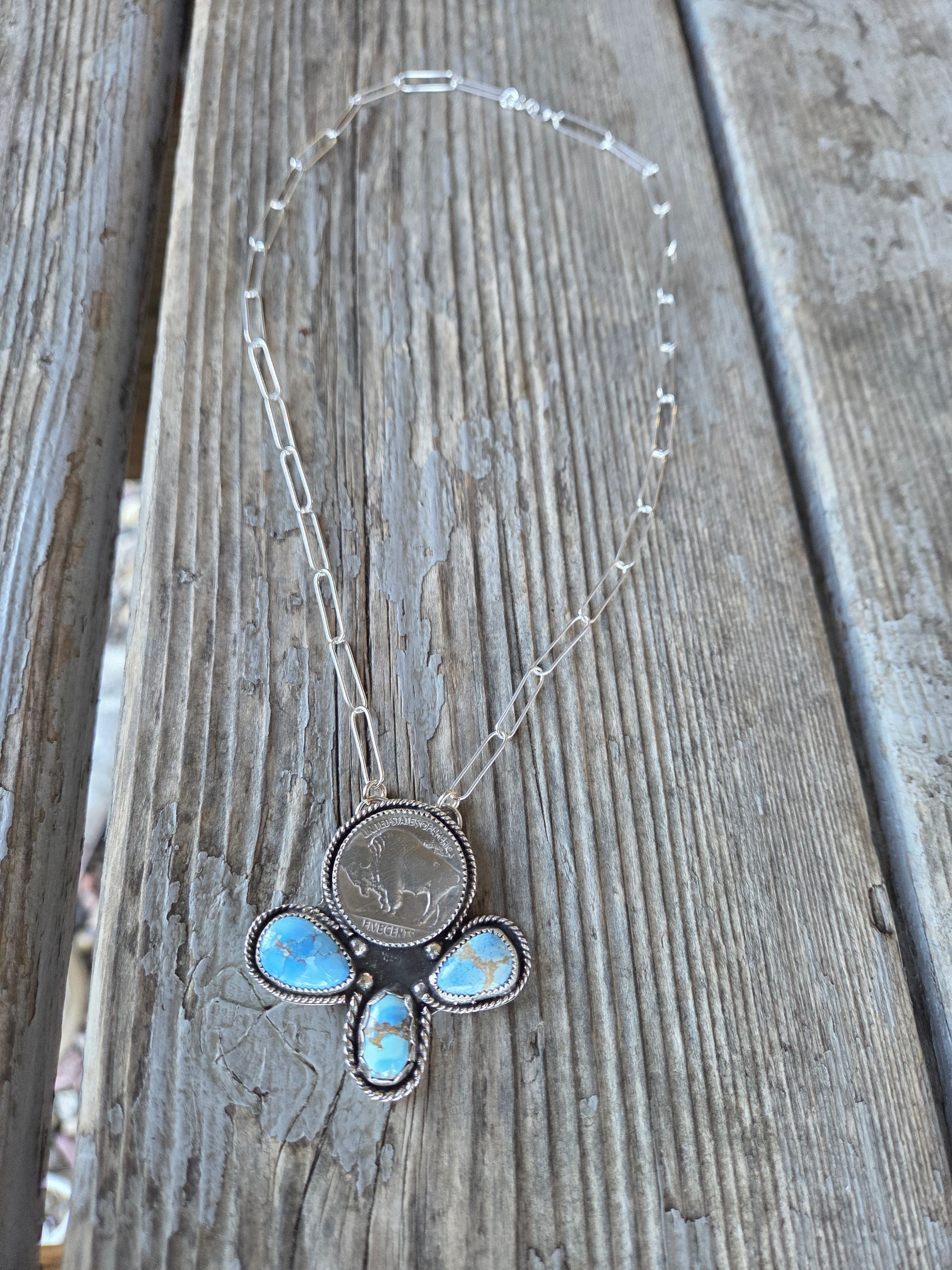 Buffalo Coin & Golden Hill Turquoise 18 inches