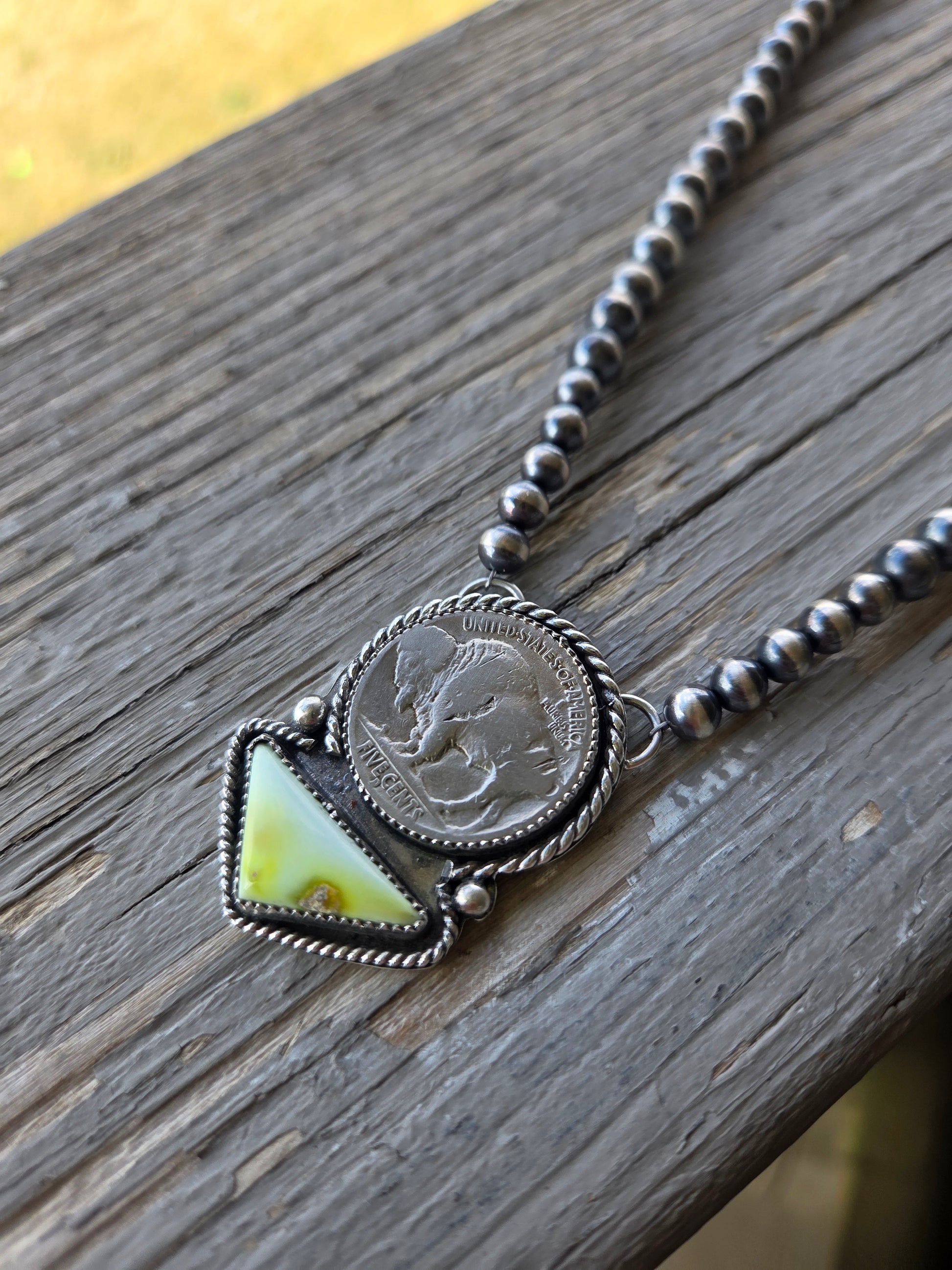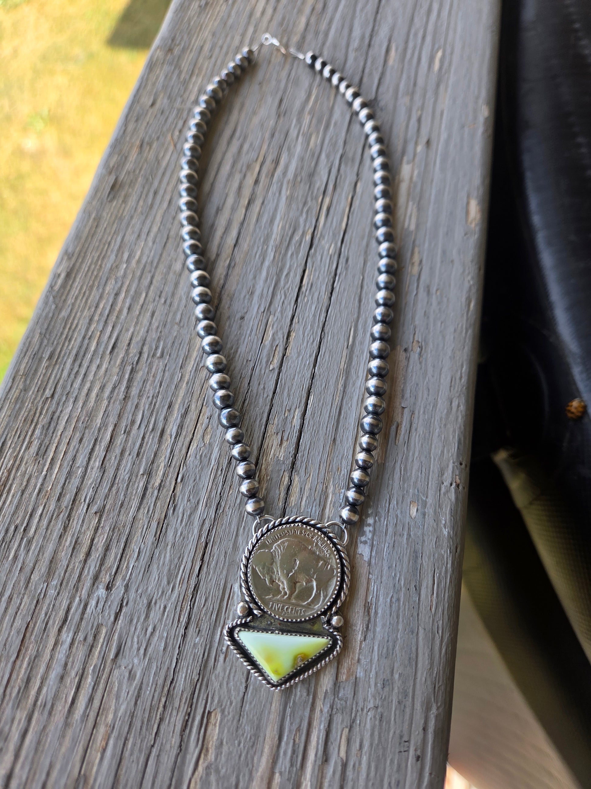 Buffalo Coin• Palomino • Sterling Silver Navajo Style Pearl 15.5 inches