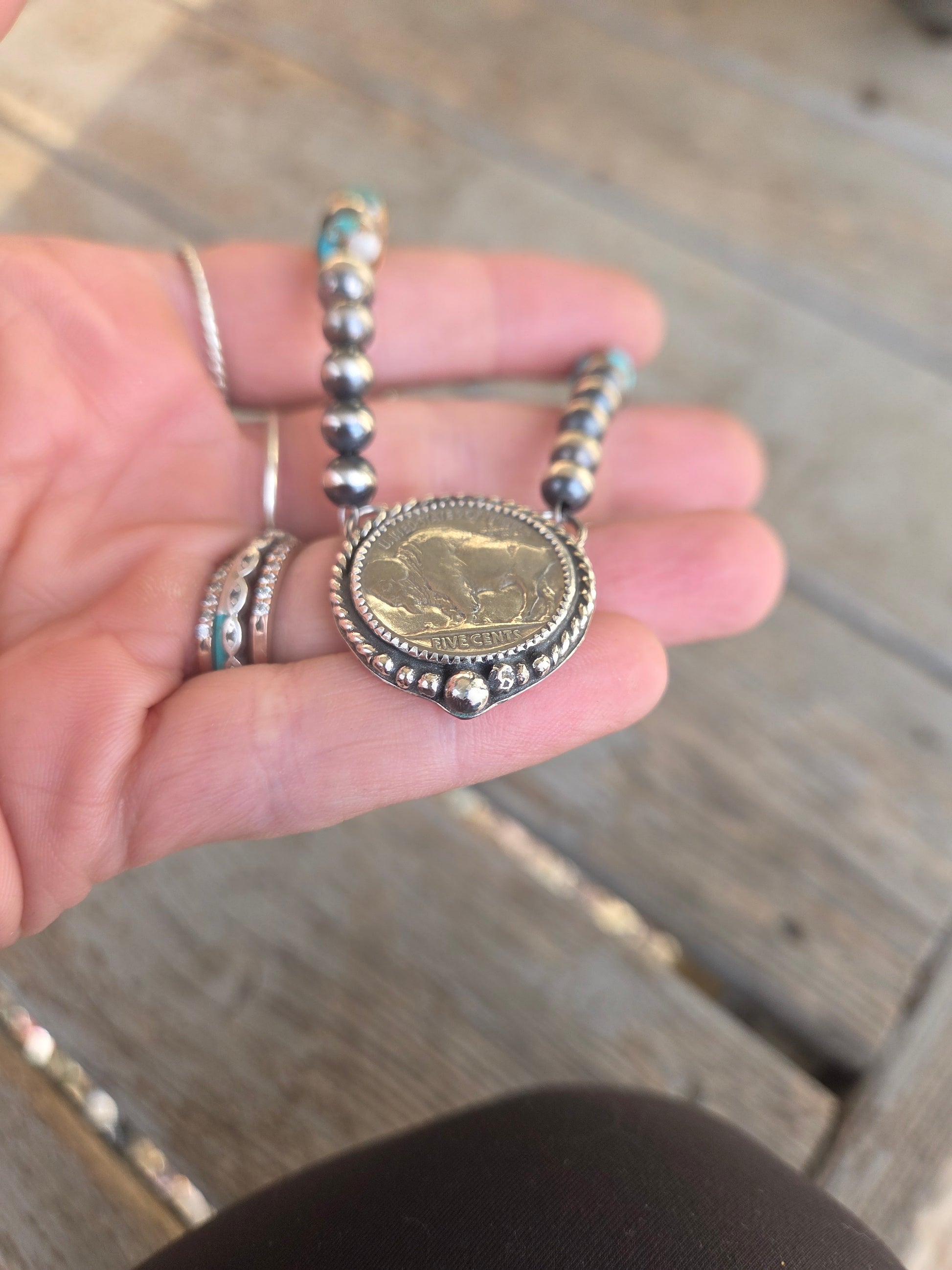 Buffalo Coin• Spiny Oyster Kingsmen Turquoise • Sterling Silver Navajo Style Pearl