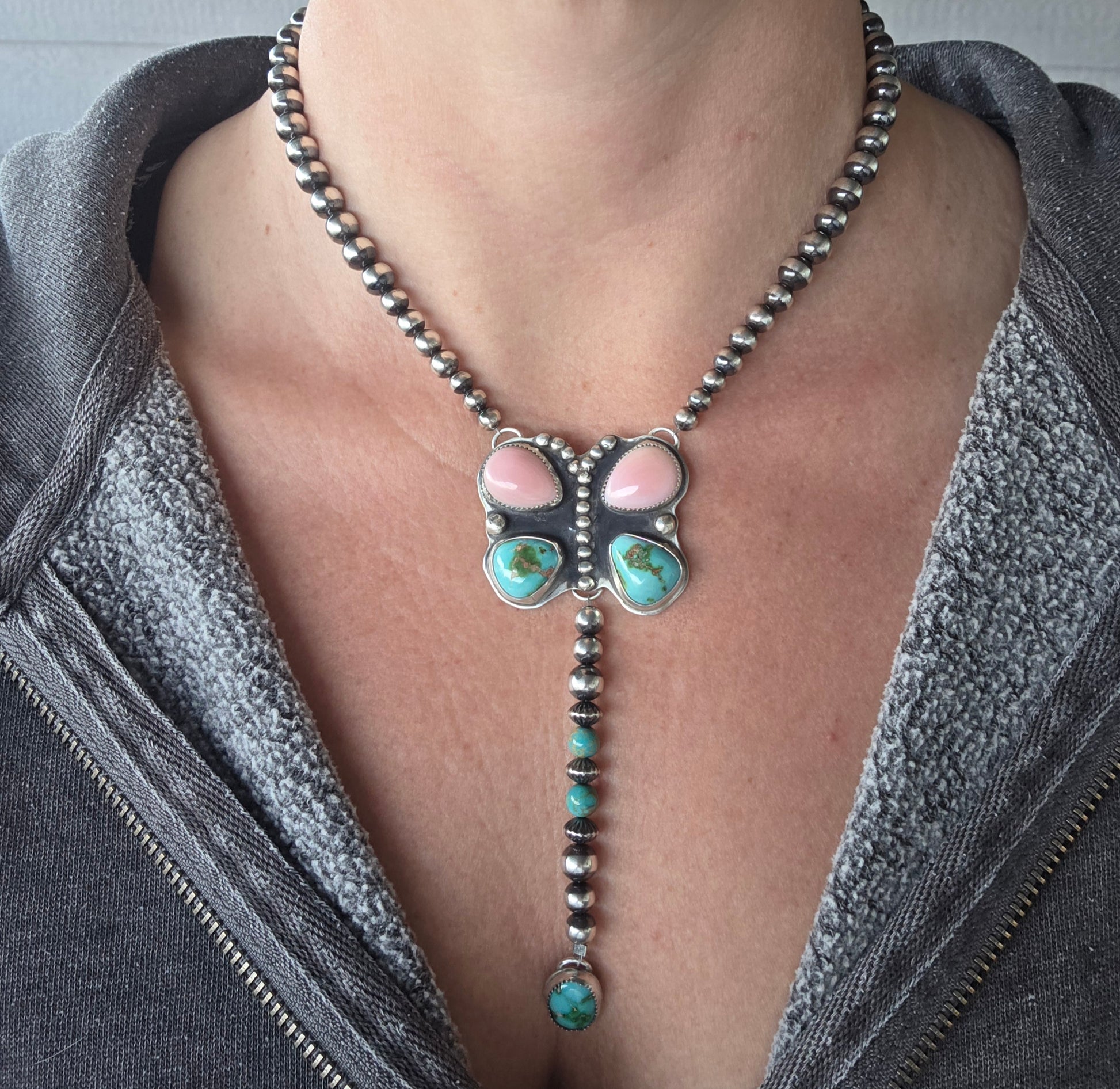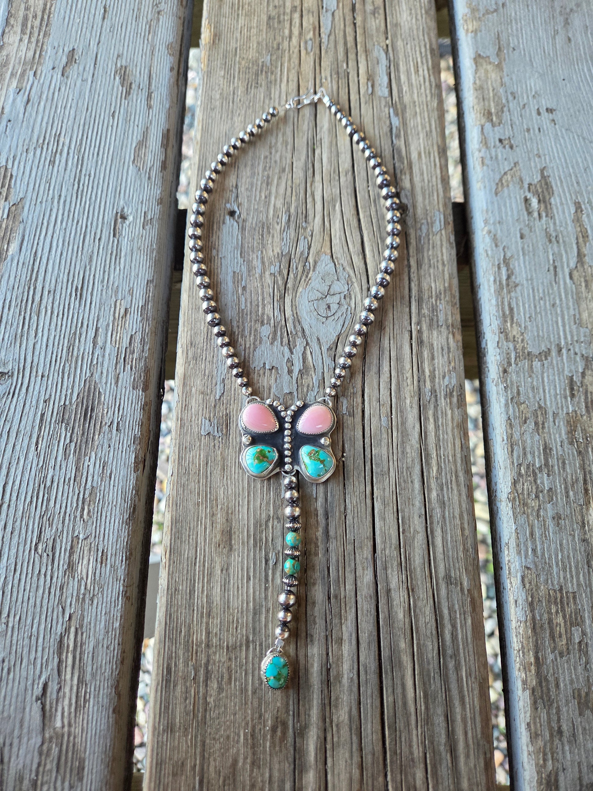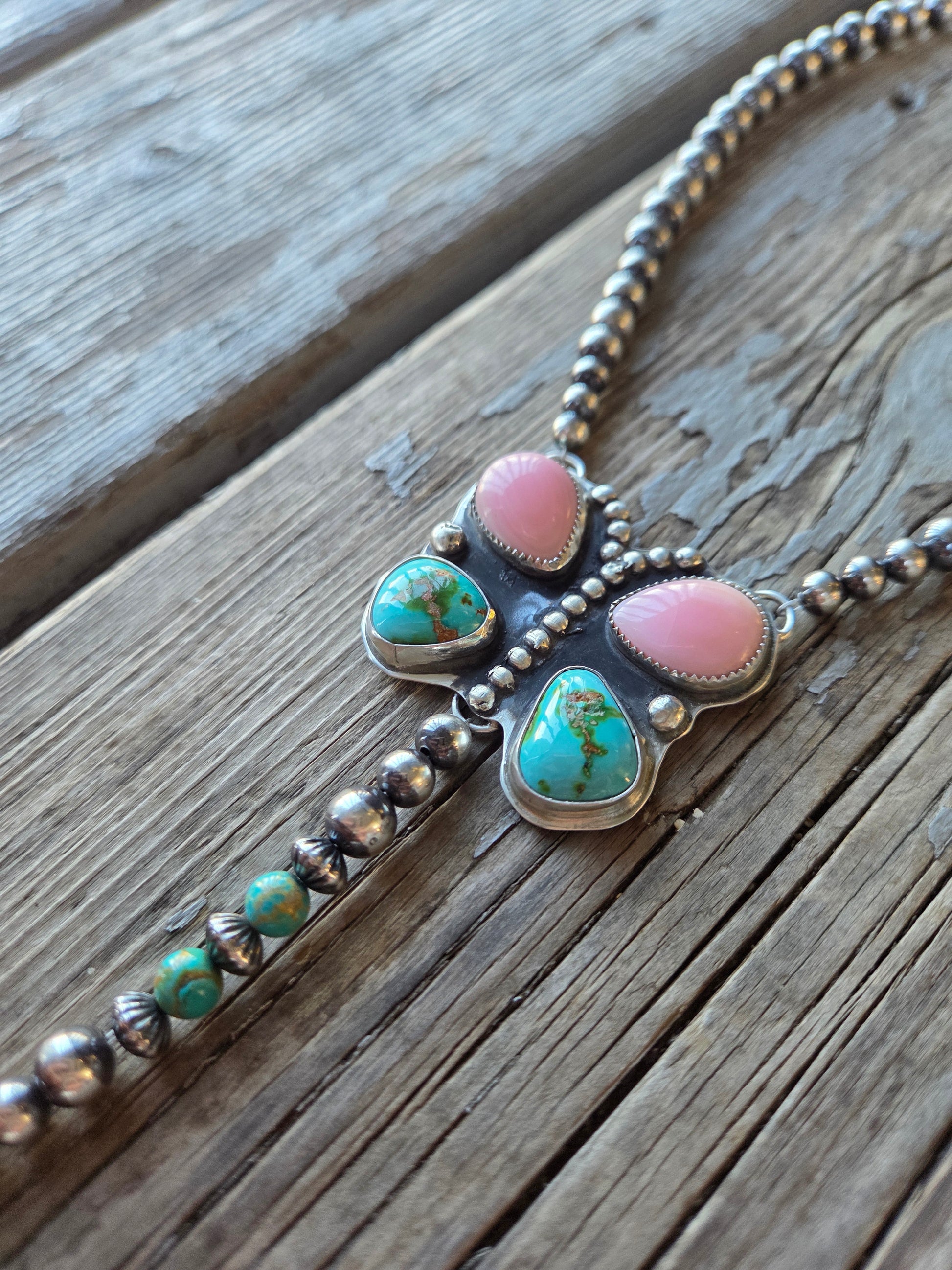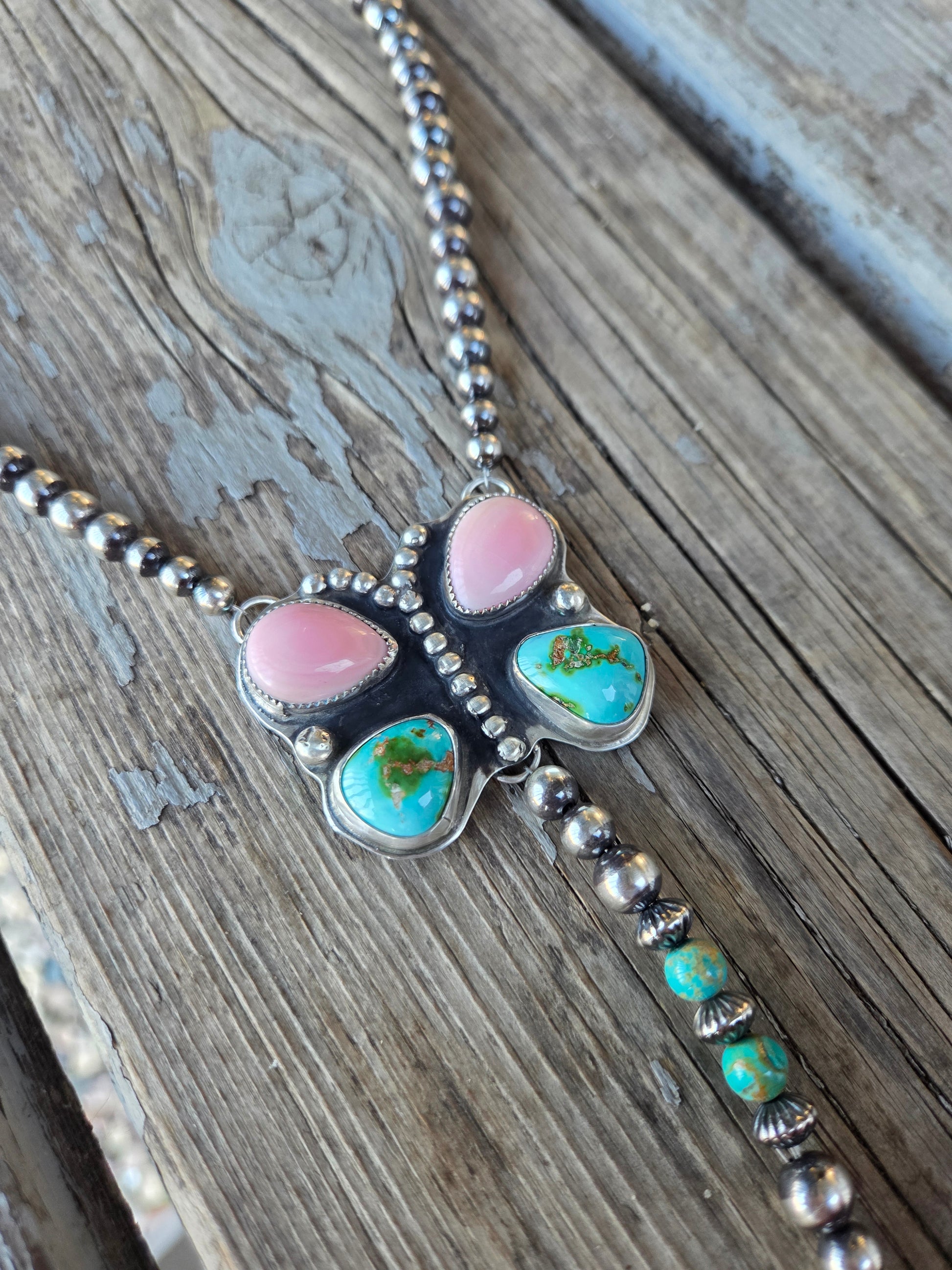Pink Conch • Sonoran Turquoise • Sterling Sliver pearl Beads • Kingsmen Beads 16.5 inches