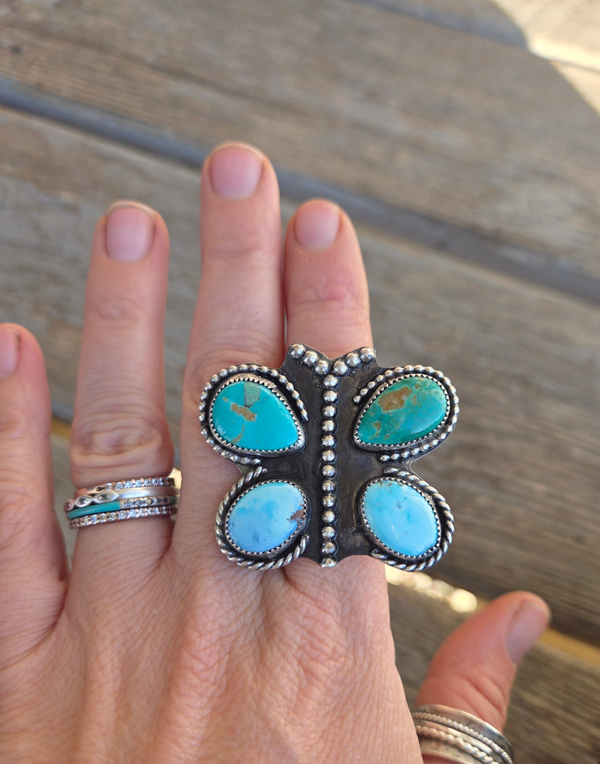 Butterfly Ring Chilean Turquoise & Golden Hill Turquoise Size 7