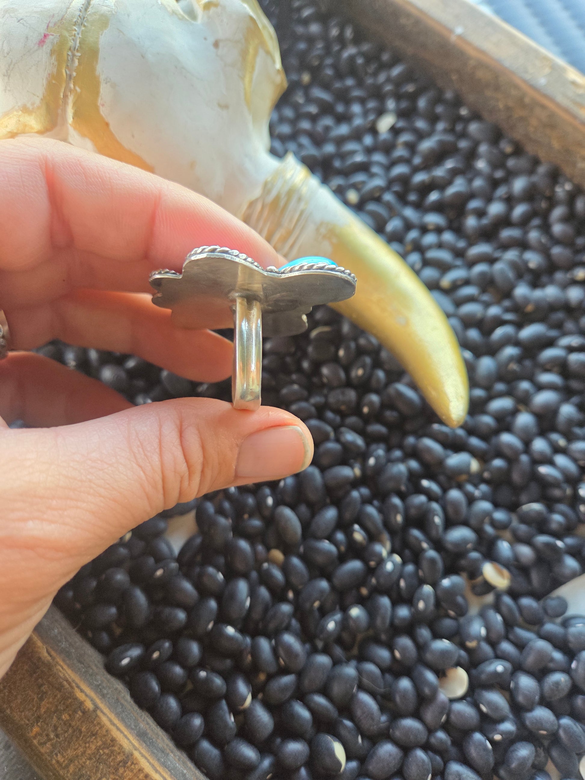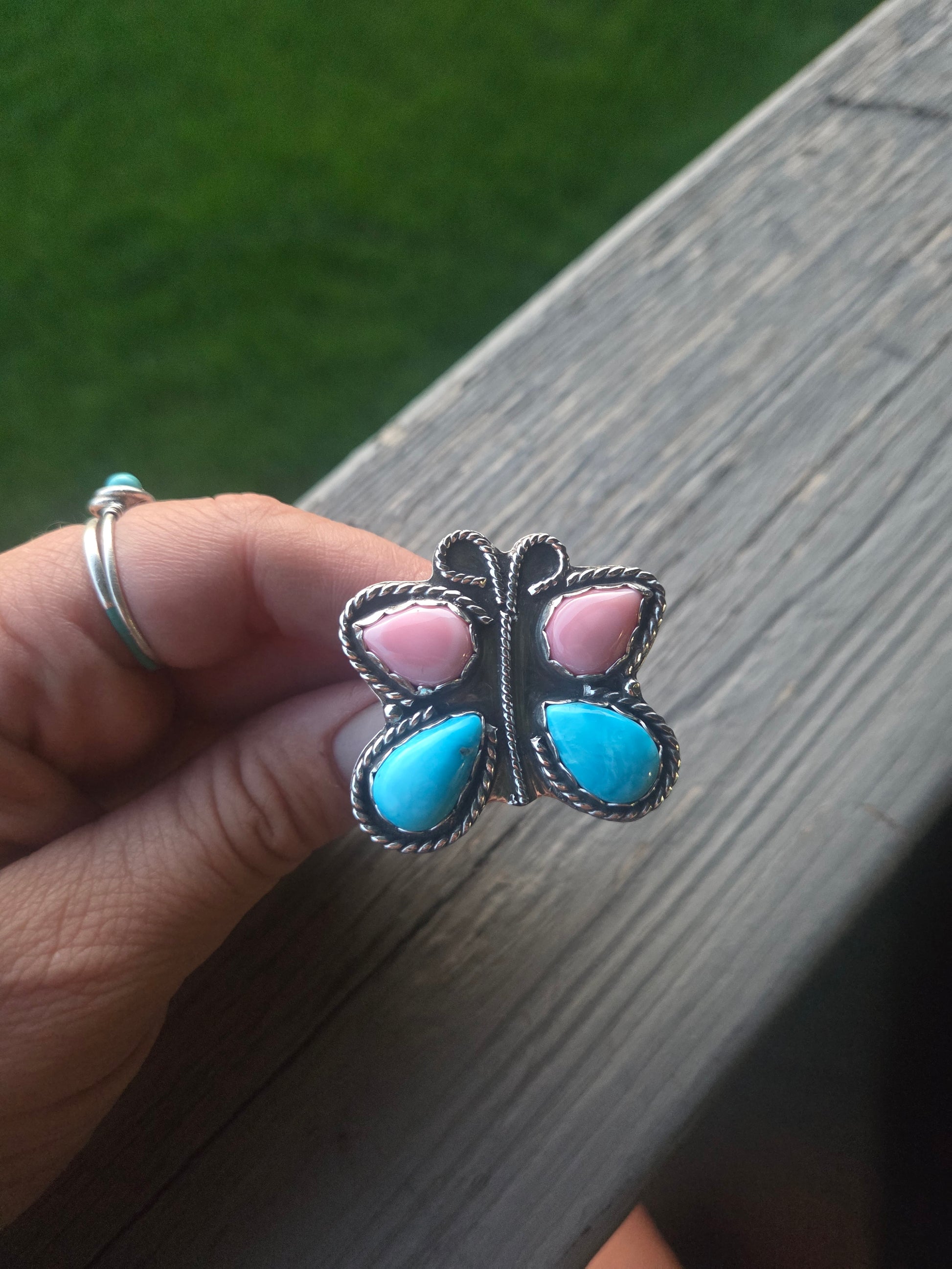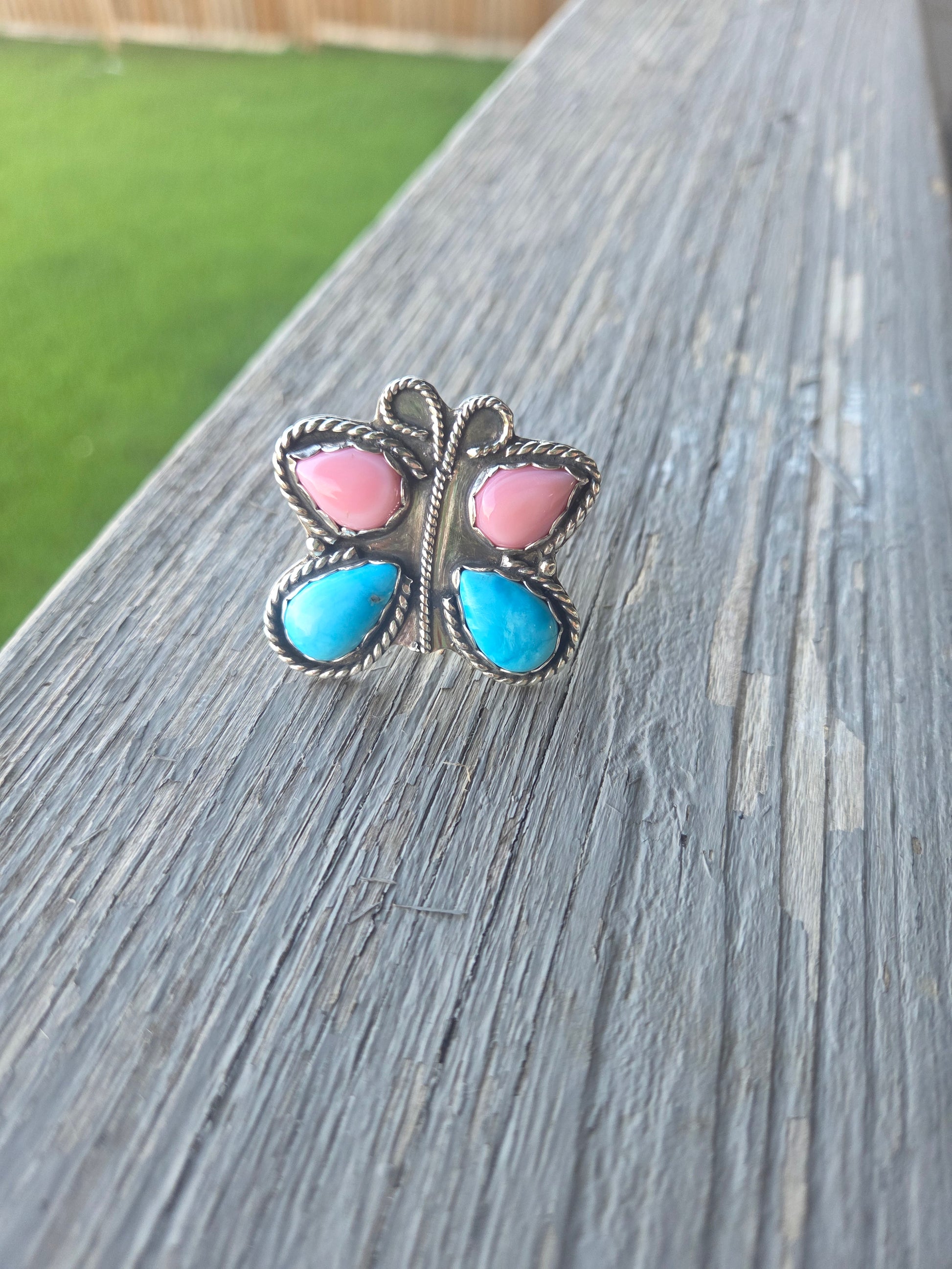 ButterFly Ring with Pink Conch & Kingsmen Turquoise Size 8