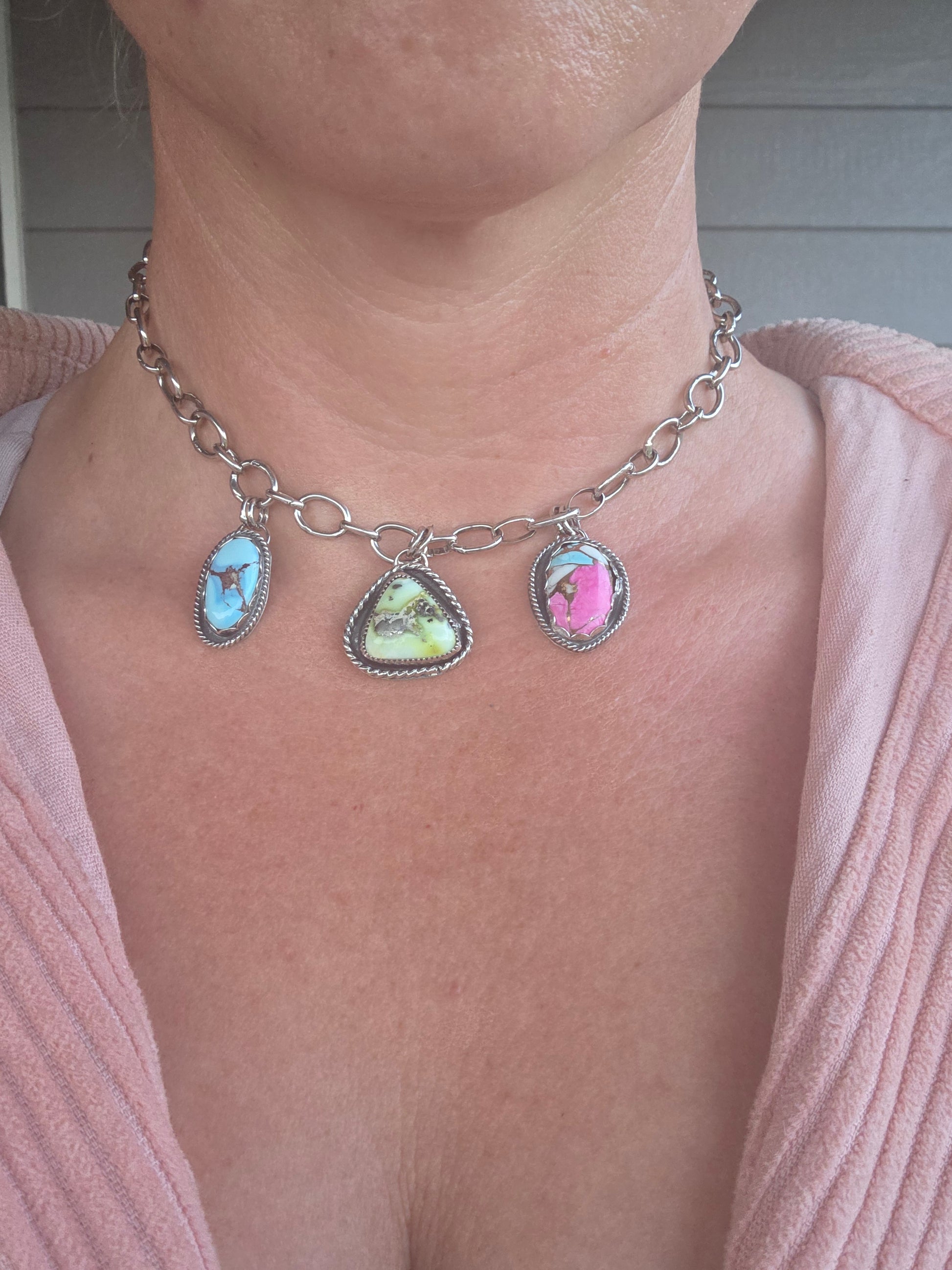 Choker Charm• Cotton Candy• Golden Hill• Palomino 16 inches and is adjustable l. Each link hand soldered.