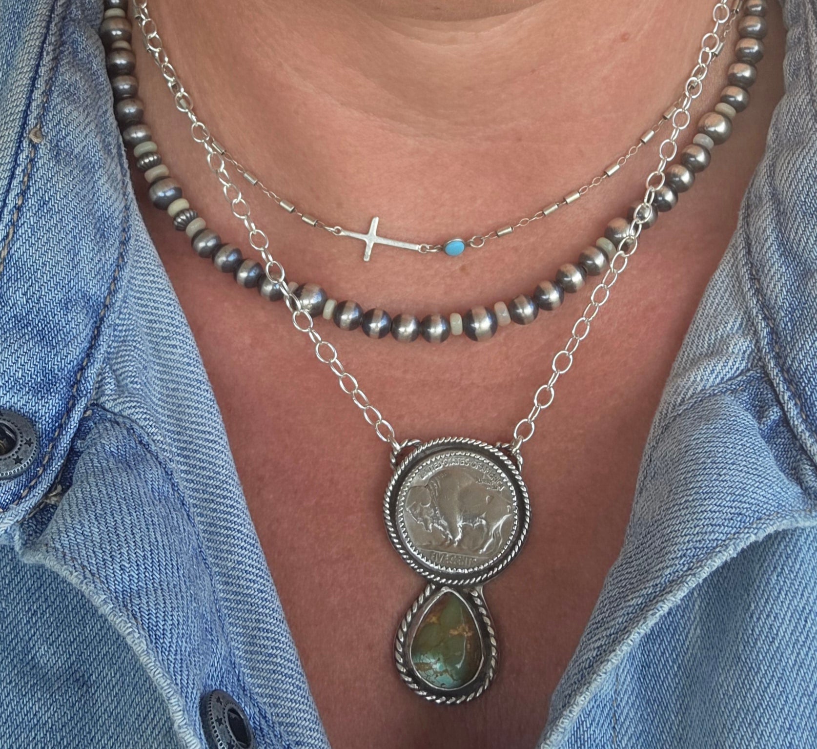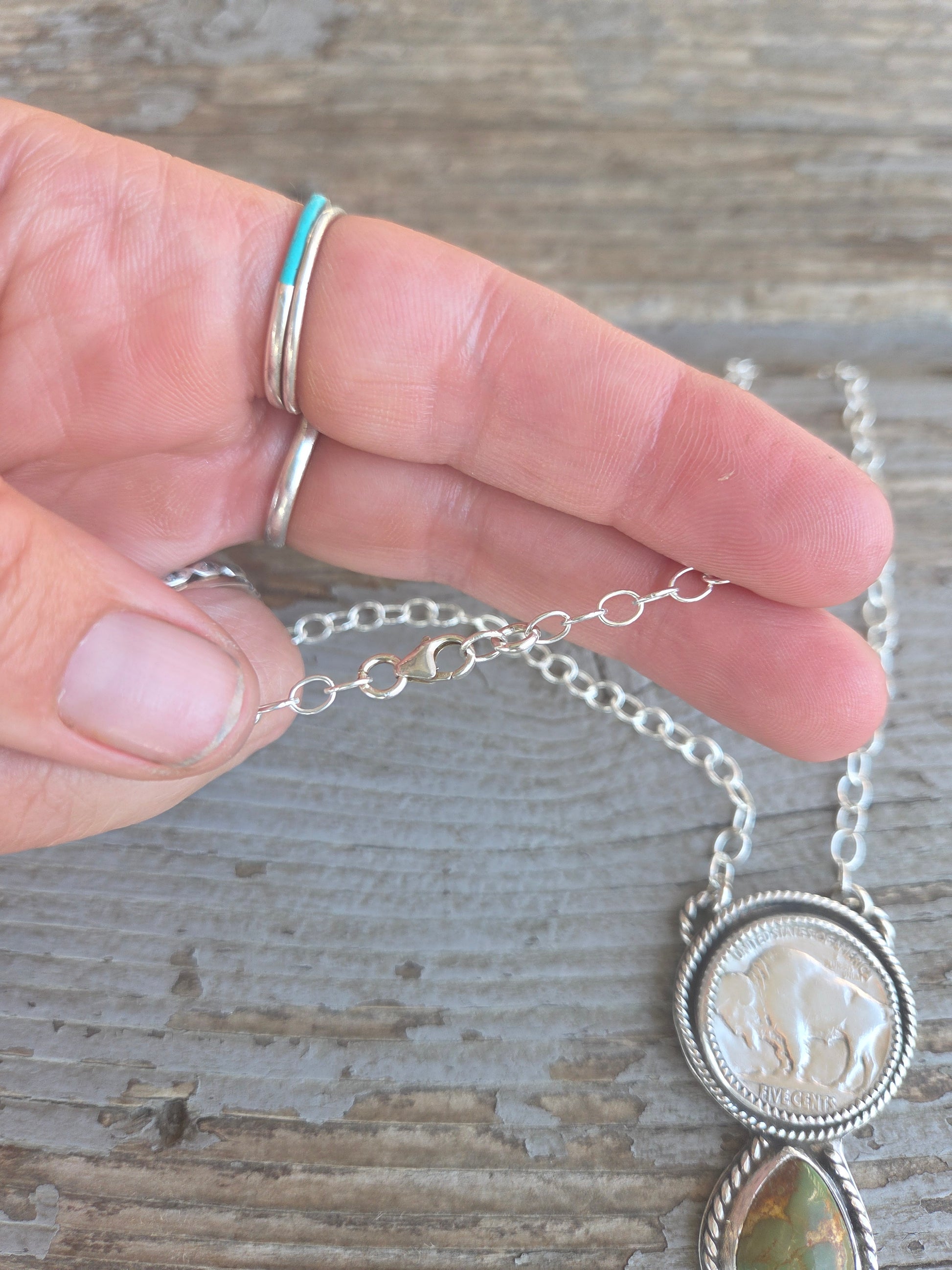 17 inch chain that can be adjusted by attaching clasp to chain link.
