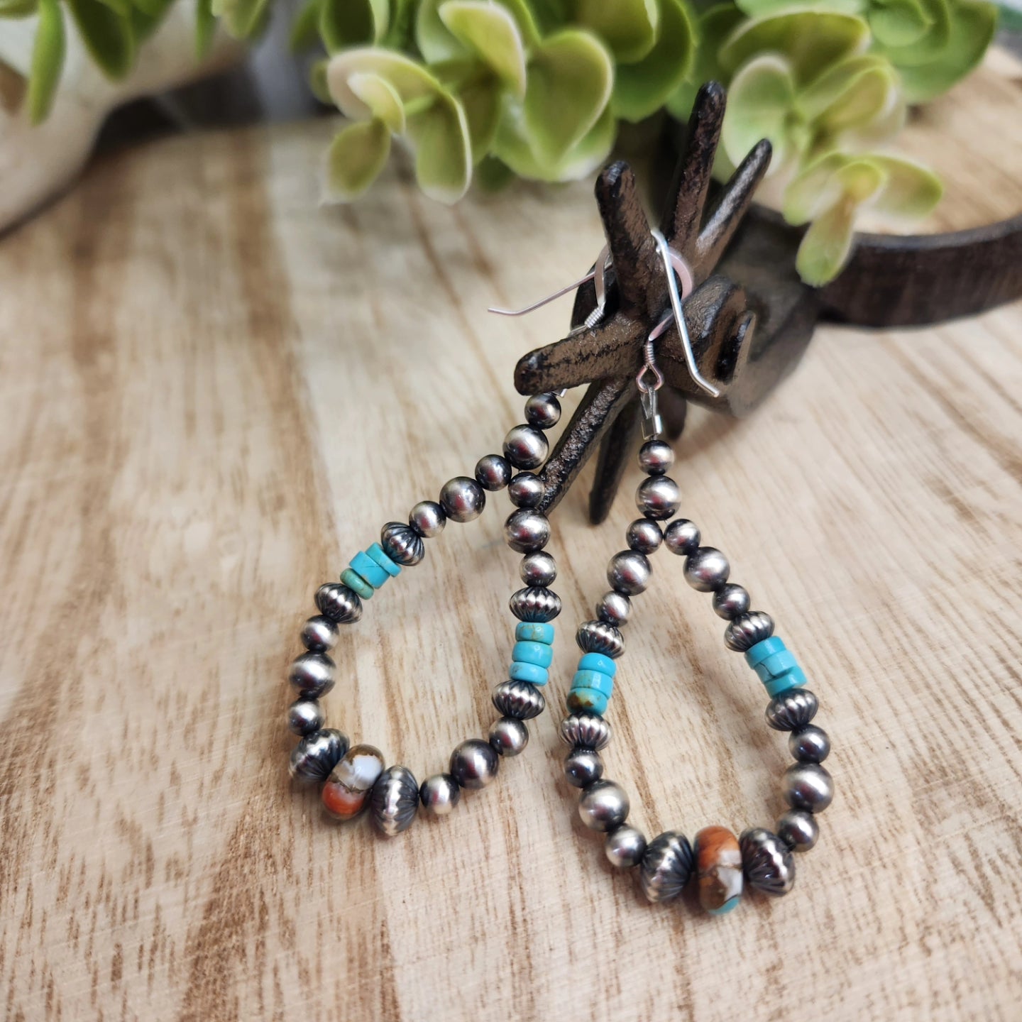 KingsmenTurquoise, Spiny Oyster Turquoise, & Sterling Silver Navajo Style Pearls 2 inch drop