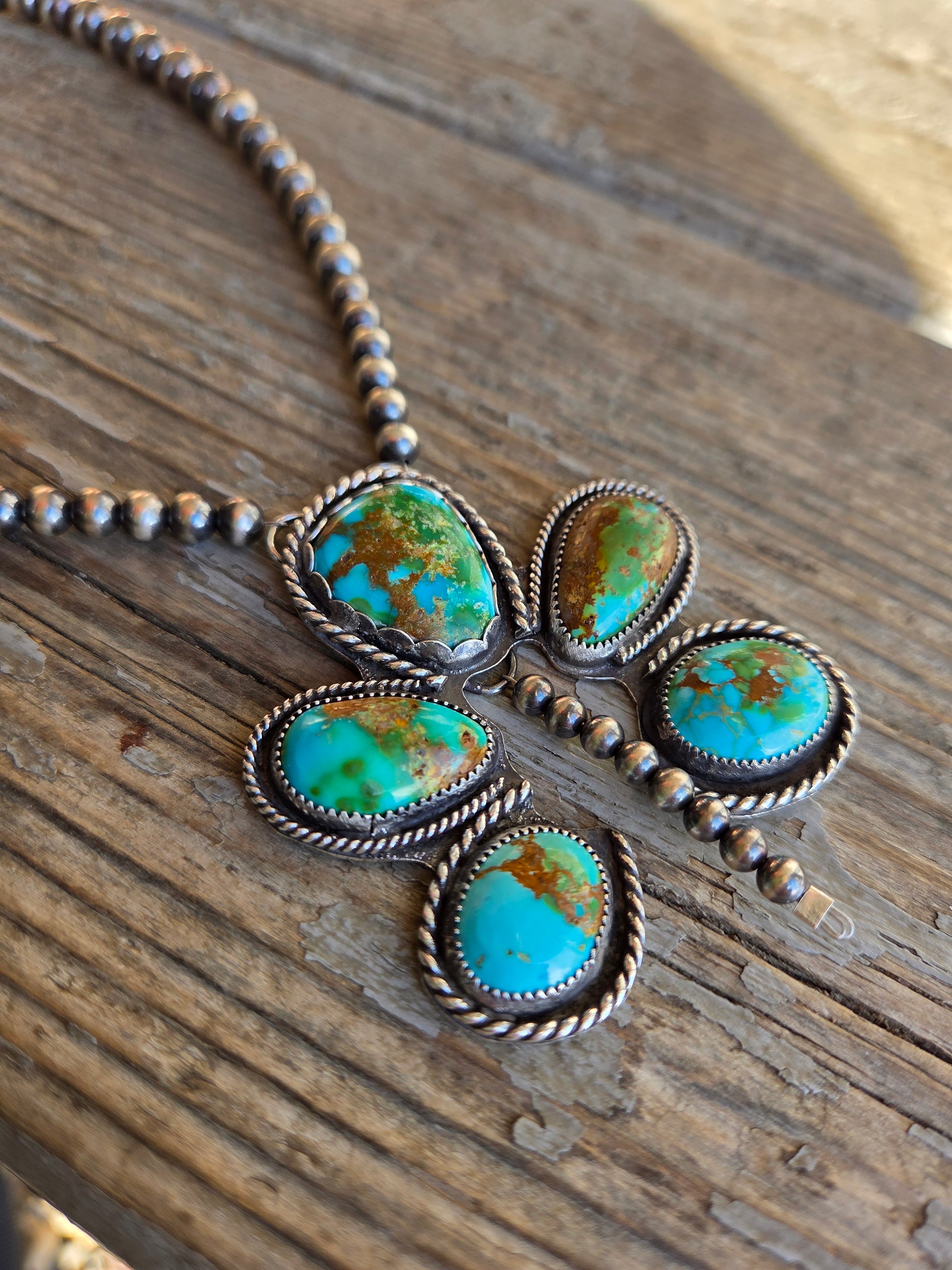 Sonoran Turquoise & Sterling Silver Navajo Style Pearls. 16 inches
