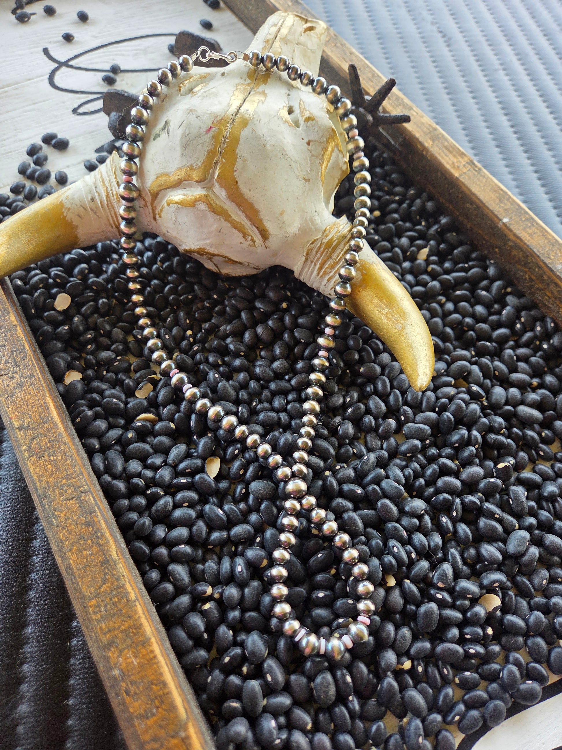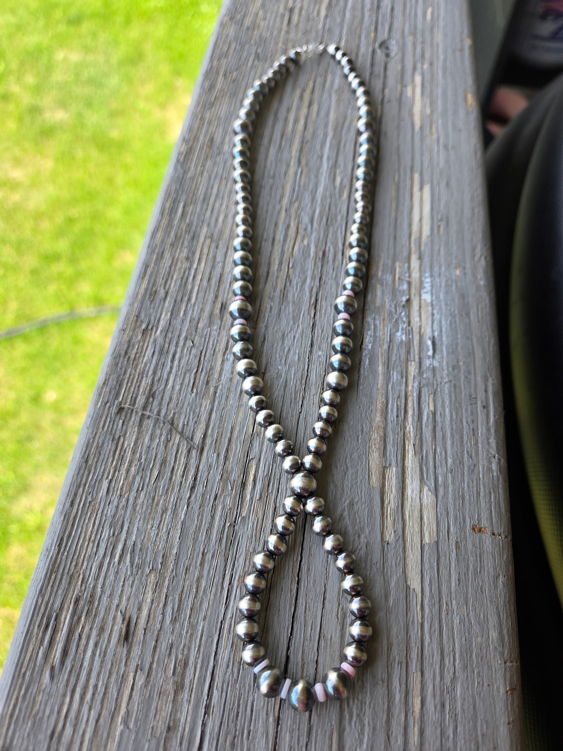 Sterling Silver Navajo Style Pearls • Pink Conch. 17.5 inches