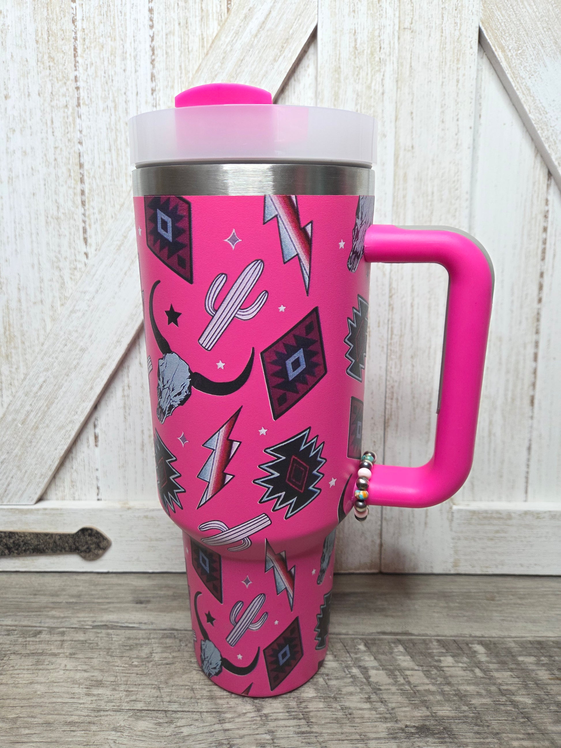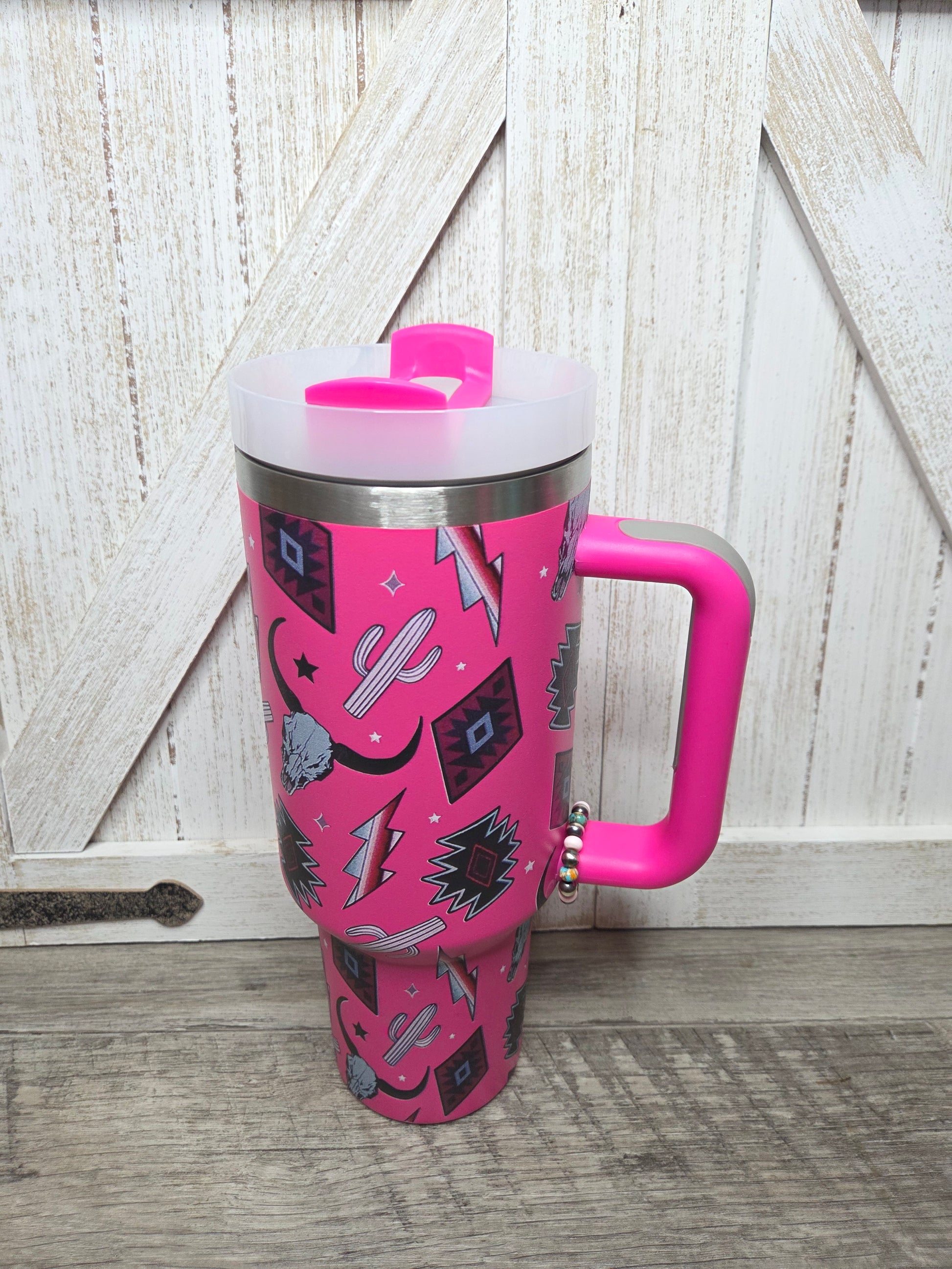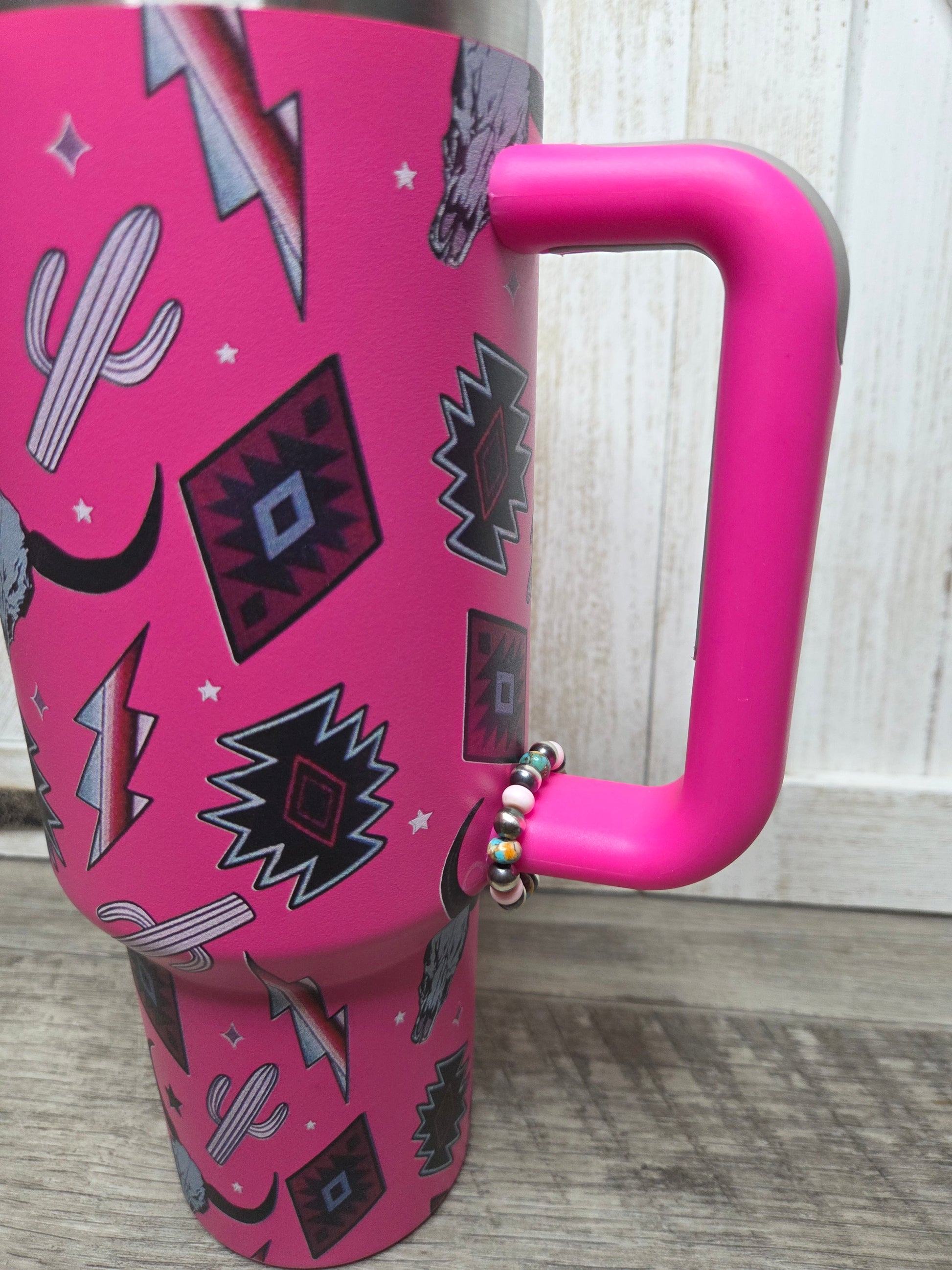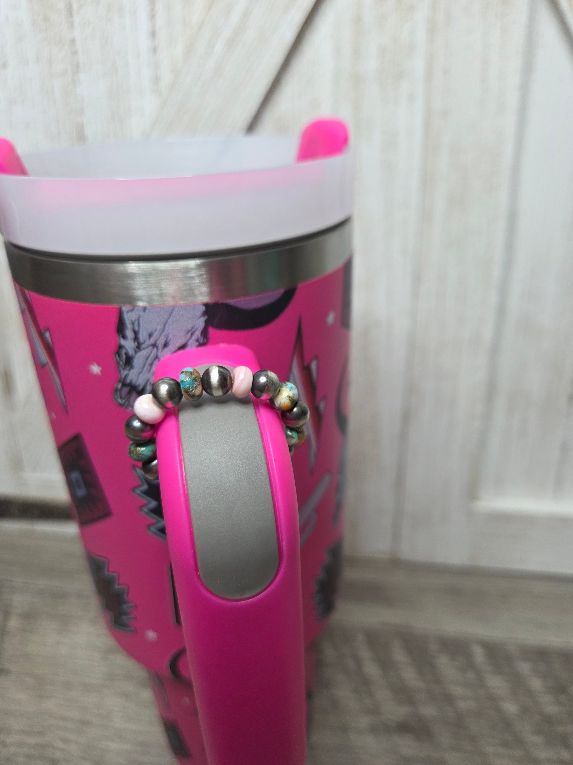 Pink Catus Long Horn lightning Bold- Pink Conch, Spiny Oyster Turquoise, Sterling Silver Pearls