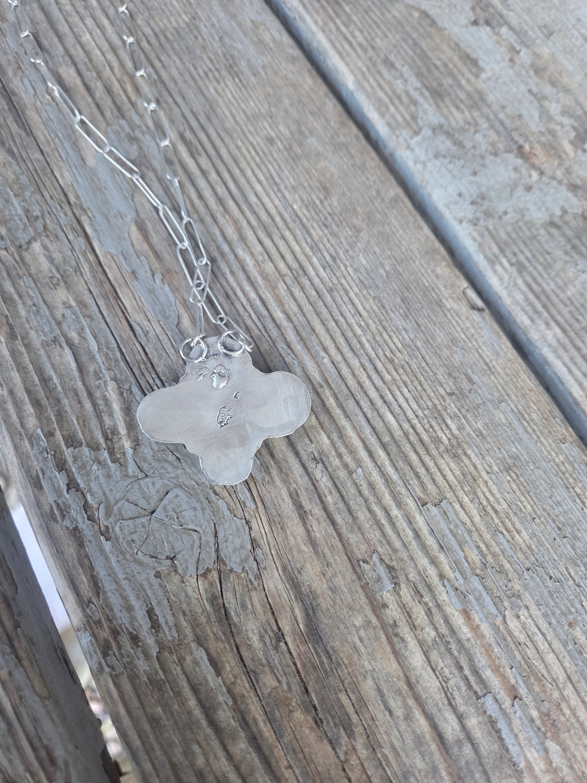 17 inch chain that can be shorten by attaching clasp to chain link. Note. There is a hairline scratch on the top stone. Price reflects that.