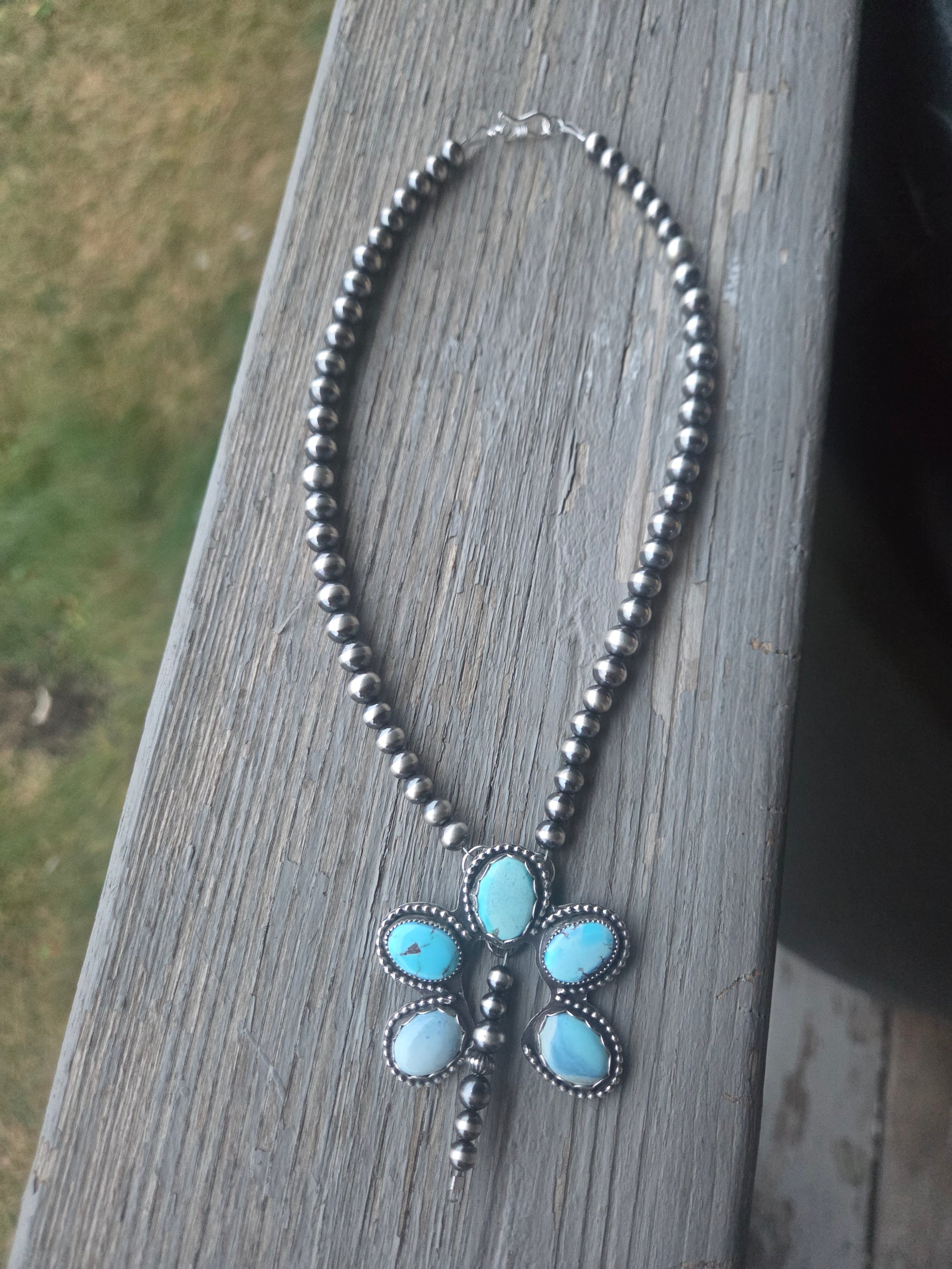 Golden Hill Turquoise & Sterling Silver Navajo Style Pearls. 16 inches