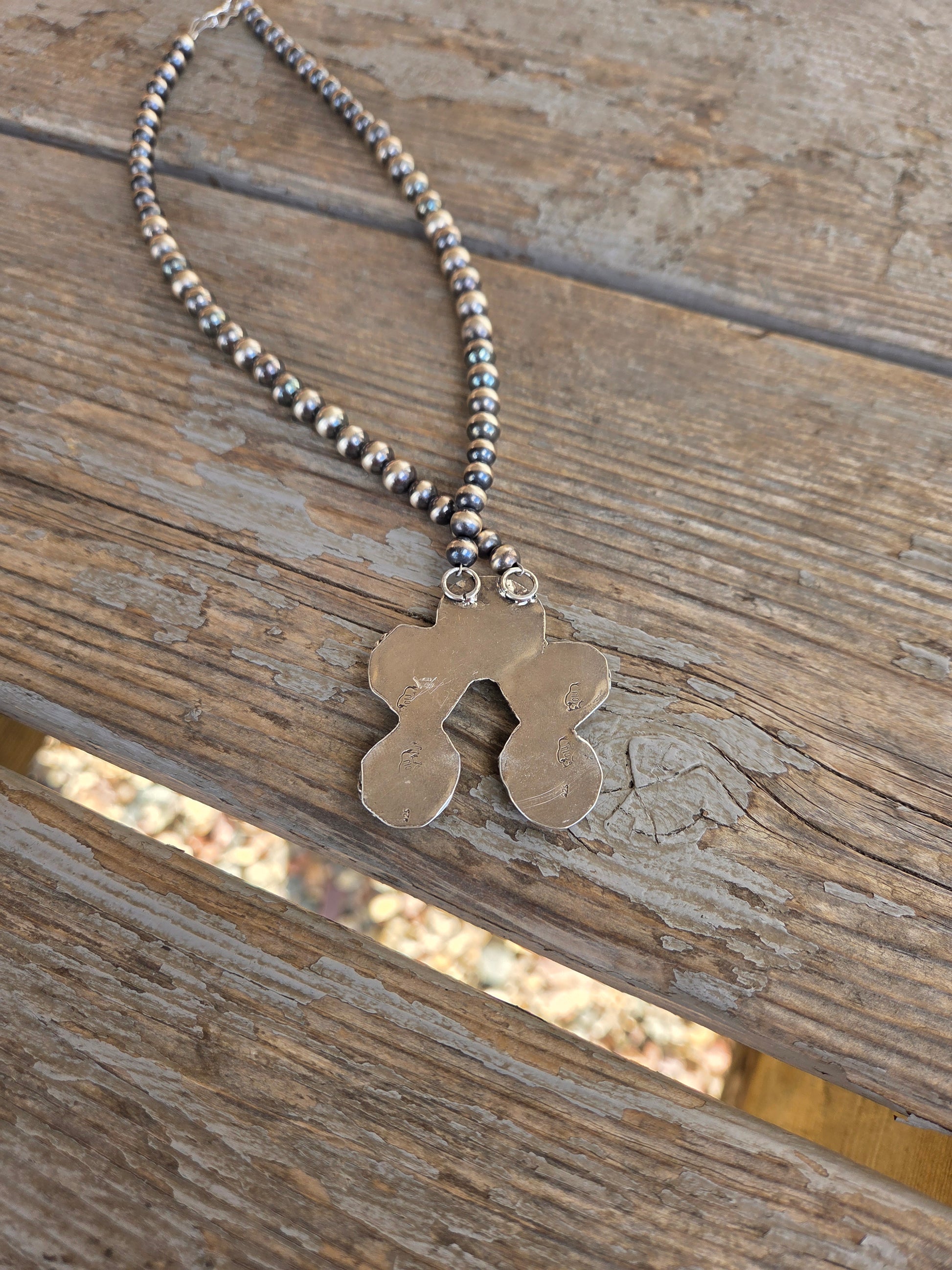 Golden Hill Turquoise, Sterling Silver Navajo Style Pearls. 17 inches