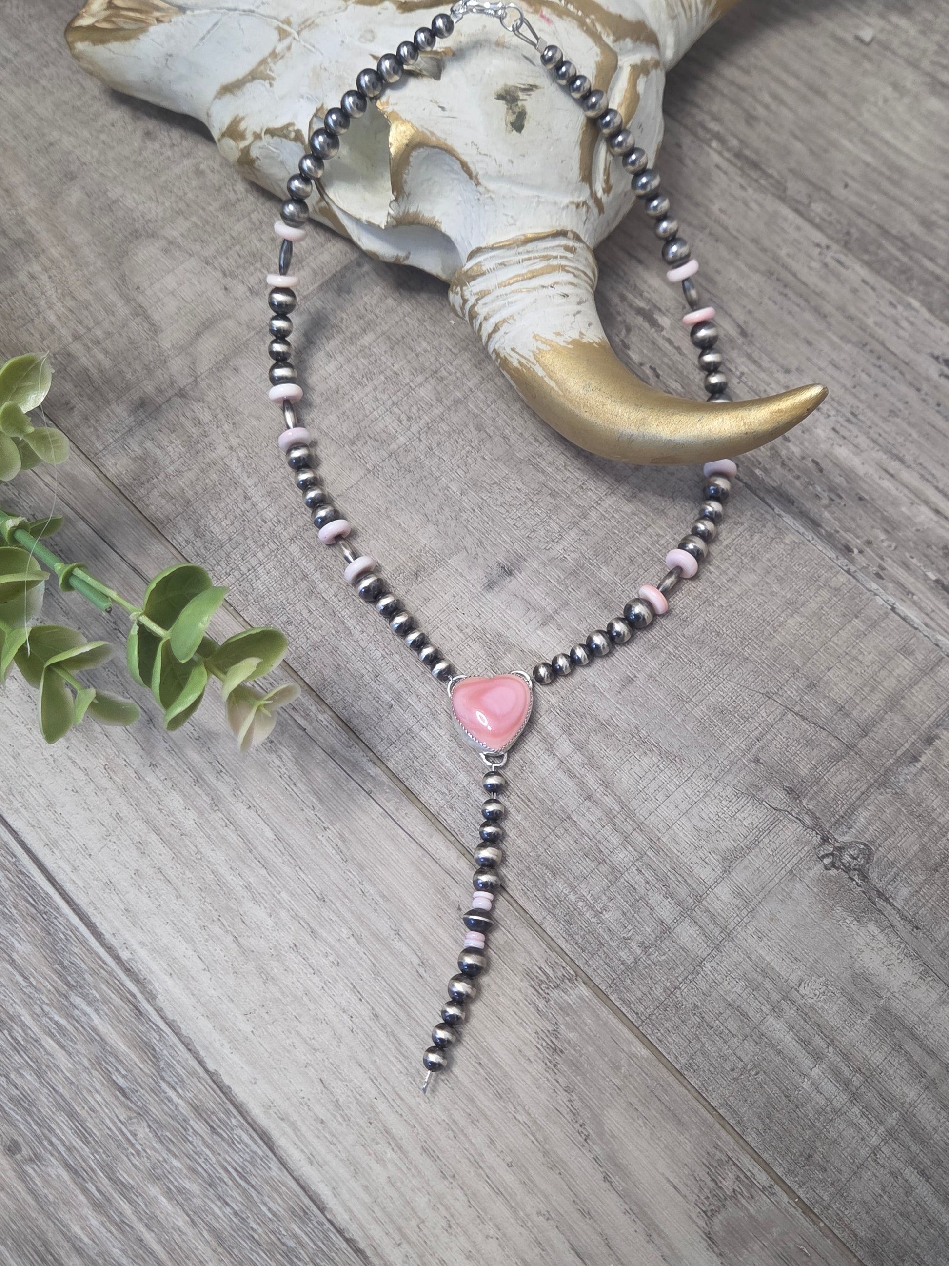 Pink Conch Lariat & Sterling Silver Navajo Style Pearls 16.5 inches