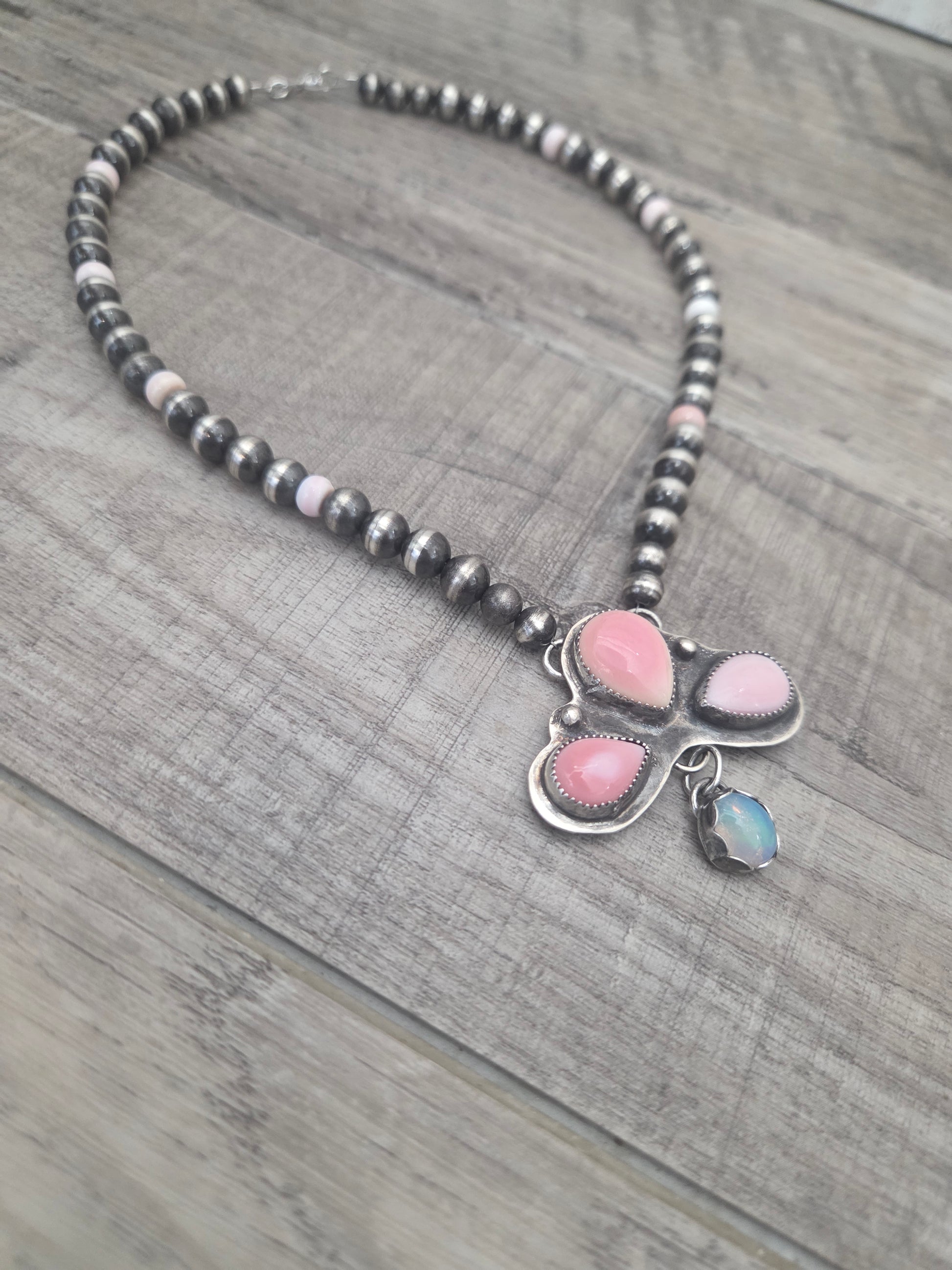 Pink Conch & Opal Sterling Navajo Style Pearls