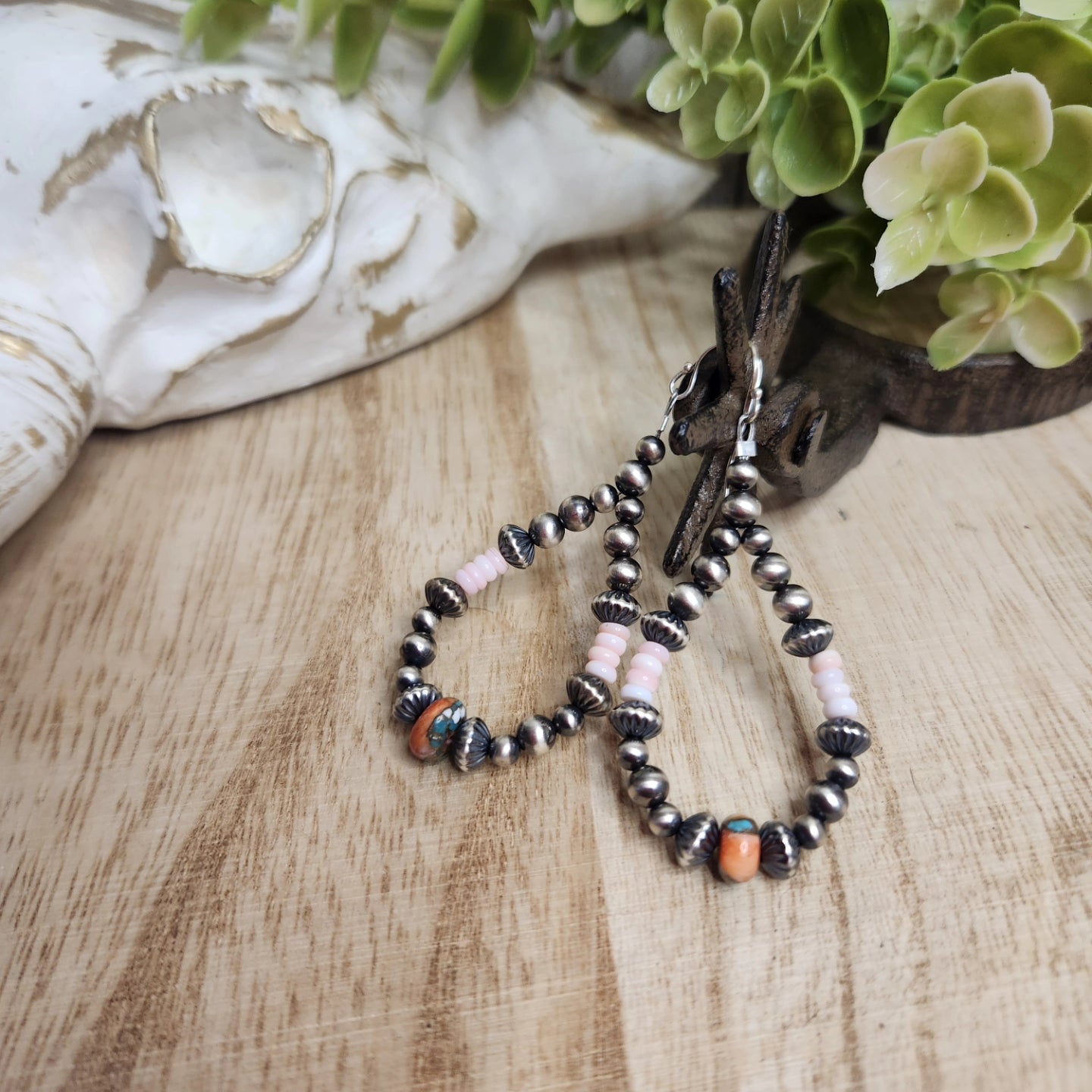 Pink Conch, Spiny Oyster Turquoise, & Sterling Silver Navajo Style Pearls