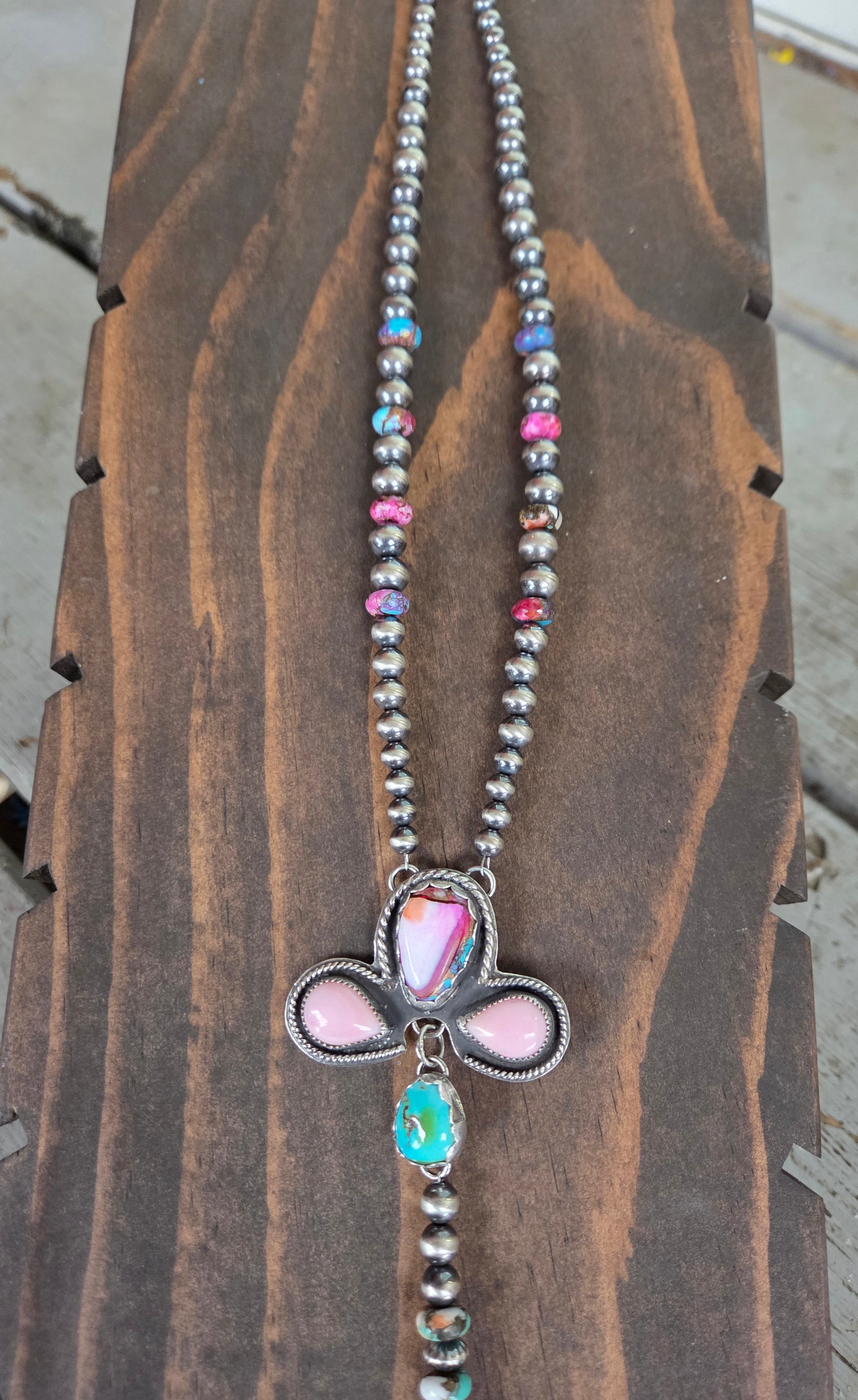 Pink Spiny• Pink Conch • Sonoran Mountain • Sterling Pearls• Purple & Orange Spiny beads.5 inches with 6 inch drop