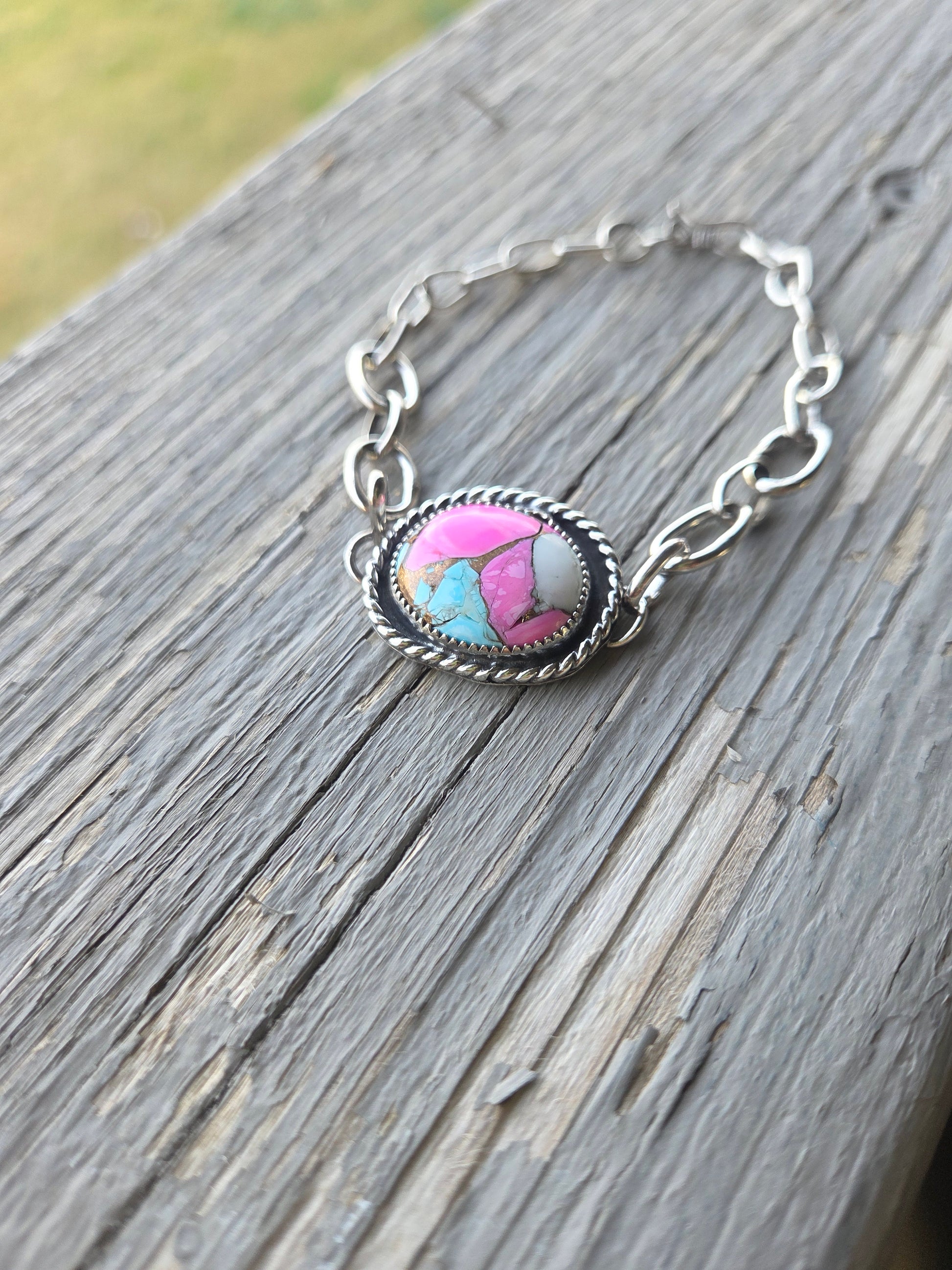 Sterling Silver Chain link adjustable bracelet & Cotton Candy Turquoise