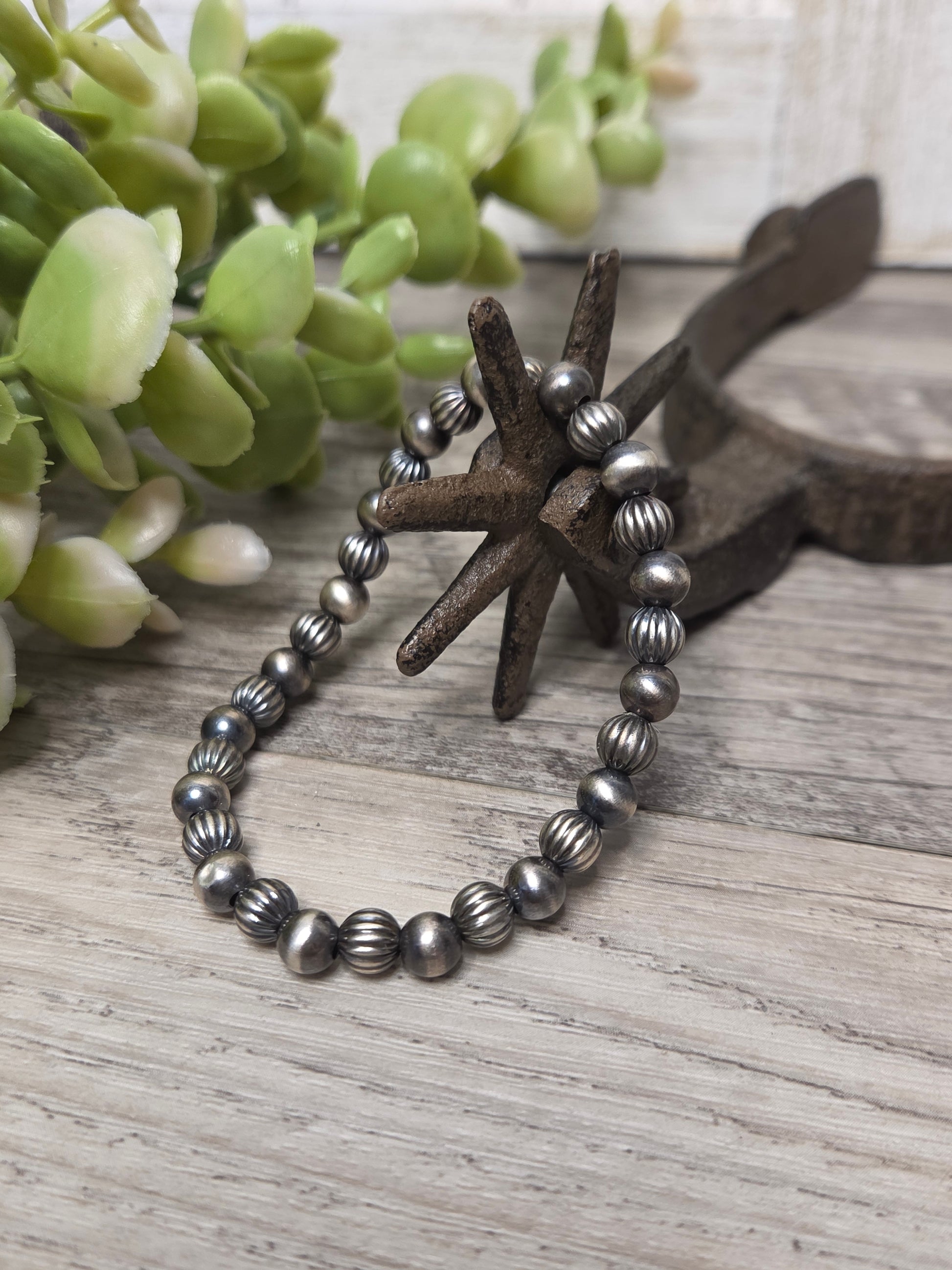 Sterling Silver Navajo Style Pearls. Stretch Bracelet