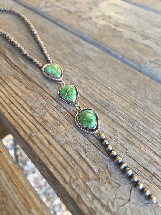 Choker Lariet Emerald Valley & Sonoran Turquoise & Sterling Silver Navajo Style Pearl • 16 inches with 6 inch drop