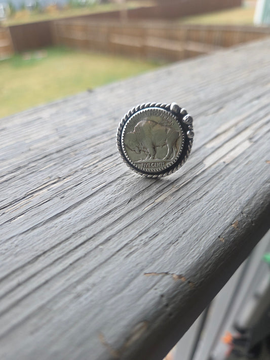 Buffalo Coin•Sterling Silver Navajo Style Pearl • Turquoise Sterling Silver Adjustable clasp. fits size 6.25-8